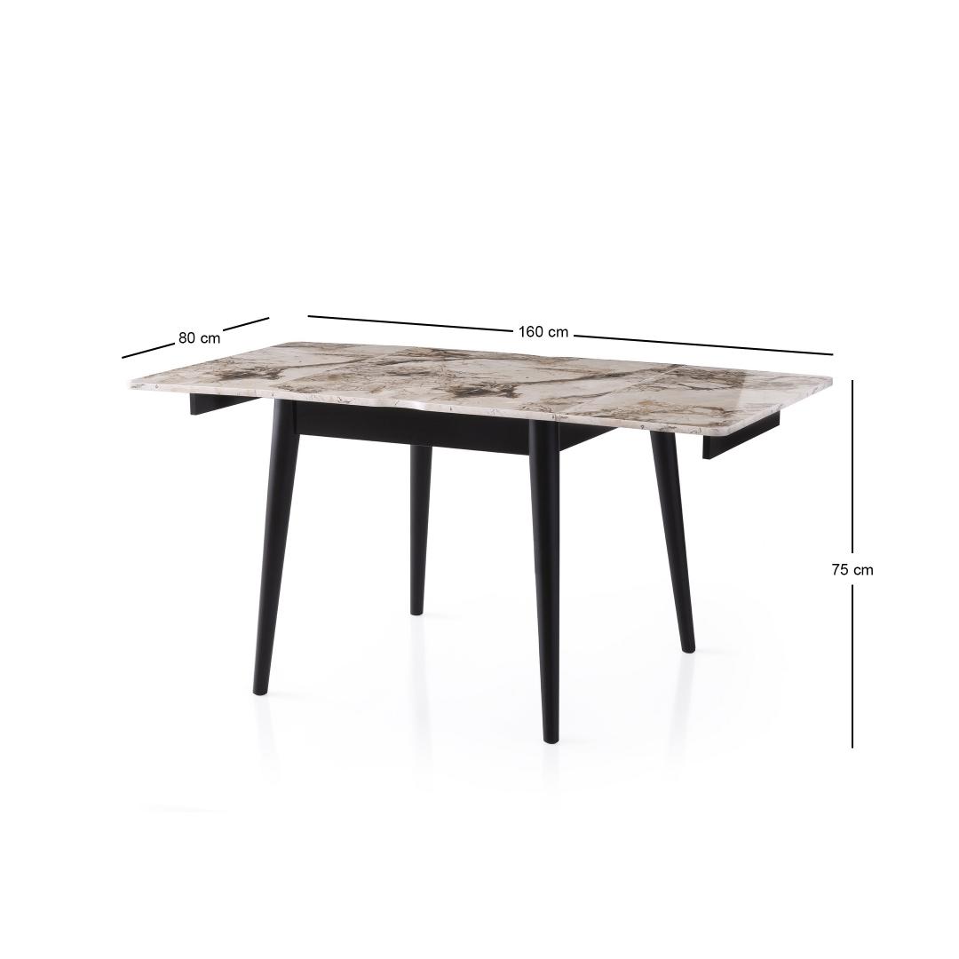 Kas otsite söögilaua, mis pole mitte ainult stiilne, vaid ka praktiline? Vaadake kaugemale kui meie pikendatav söögilaud! See uimastav tükk on loodud kõigi teie söögikohtade vajaduste rahuldamiseks, lisades samal ajal teie kodule elegantsi. Elegantne disain iga kodu jaoks Pikendatavas söögilauaks on klanitud valge marmorist viimistlus, mis tõstab koheselt iga söögitoa ilme. Selle raudsed jalad pakuvad stabiilsust ja vastupidavust, tagades, et see laud kestab aastaid. Ükskõik, kas korraldate õhtusöögi või naudite perega vaikset sööki, on see laud ideaalne valik. mitmekülgne ja funktsionaalne Laiusega 80 cm ja kõrgus 75 cm, see laud on ideaalne suurus iga ruumi jaoks. Kas vajate külastajatele rohkem ruumi? Laiendage laud lihtsalt 160 cm -ni, et kõik mugavalt mahutada. Laua kandevõime on 100 kg, muutes selle sobivaks kõigi teie söögikohtade jaoks.Tehnilised detailid:Materjal: 100% melamiiniga kaetud osakeste laudVärv: valge marmorTabeli suurus: laius: 80 cm, kõrgus: 75 cm, sügavus: 80 cmlaiendatud laua laius: 160 cmkandevõime: 100 kg Ärge jätke kasutamata võimalust omada seda kaunist ja funktsionaalset laiendatavat söögilaua. Uuendage oma söögikogemust juba täna! Värv: White Marble