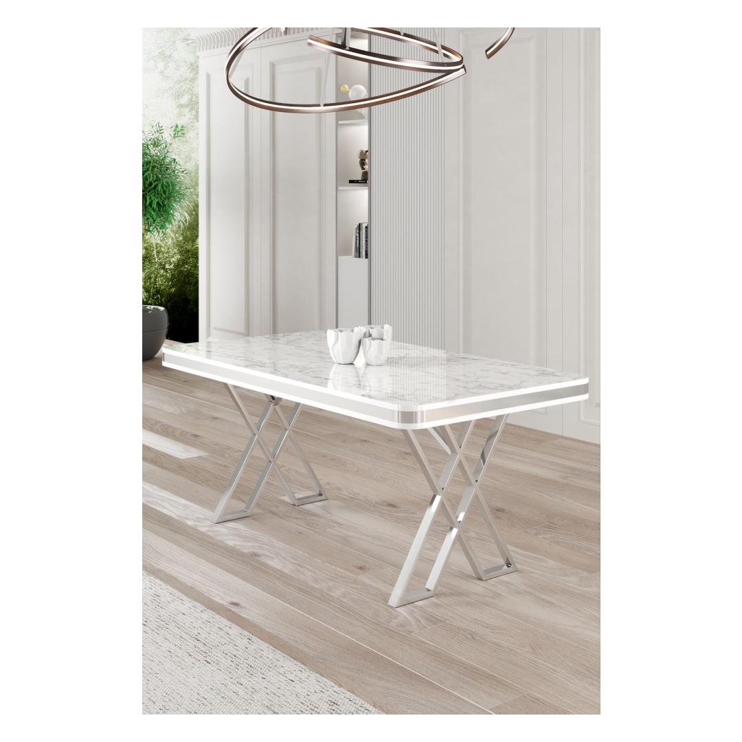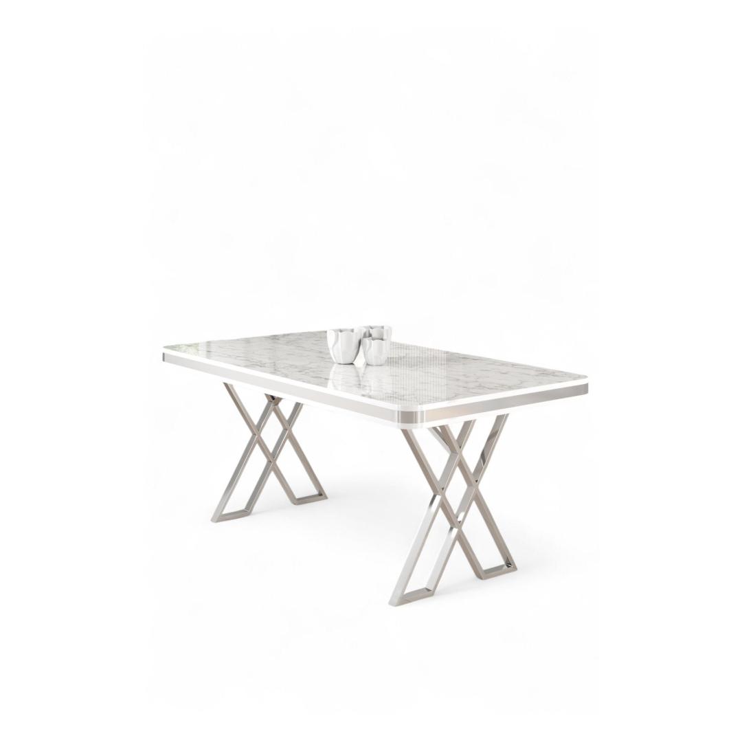 Muuda oma söögituba luksuslikuks ja elegantseks ruumiks meie hämmastava söögilaua abil. Valmistatud 100% lakitud paneelist ja stiilsetest metalljalgadest, kiirgab see laud rafineeritust ja stiili. Valge marmor ja kroomi värvide kombinatsioon lisab igale sisustusele modernsuse puudutuse, muutes selle ideaalseks keskpunktiks sinu kodus.Tõsta oma söögikogemustKujutle, kuidas kogunete selle kauni söögilaua ümber oma lähedastega, luues unustamatuid mälestusi maitsvate toitude saatel. Avatud disain võimaldab mugavat istumist ja piisavalt ruumi külaliste vastuvõtmiseks, muutes iga söögikogemuse eriliseks ja meeldejäävaks.Ükski kvaliteet ja disain ei ole võrreldavadMeie söögilaud on mitte ainult visuaalselt atraktiivne, vaid ka vastupidav. Kvaliteetsed materjalid tagavad vastupidavuse ja pikaealisuse, nii et saad seda eset nautida aastaid. Stiilne ja modernne disain lisab igale ruumile rafineerituse puudutuse, tõstes sinu kodu üldist esteetikat.Tehnilised andmed:Materjal: 100% lakitud paneelJalad: MetallMõõtmed: Laius 130 cm, Kõrgus 74 cm, Sügavus 80 cmVärv: Valge marmor ja kroom Värv: White Marble Chrome