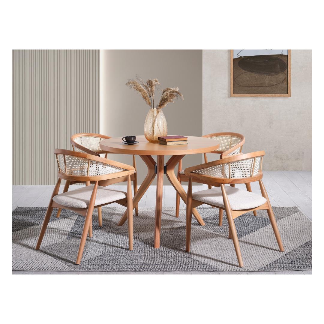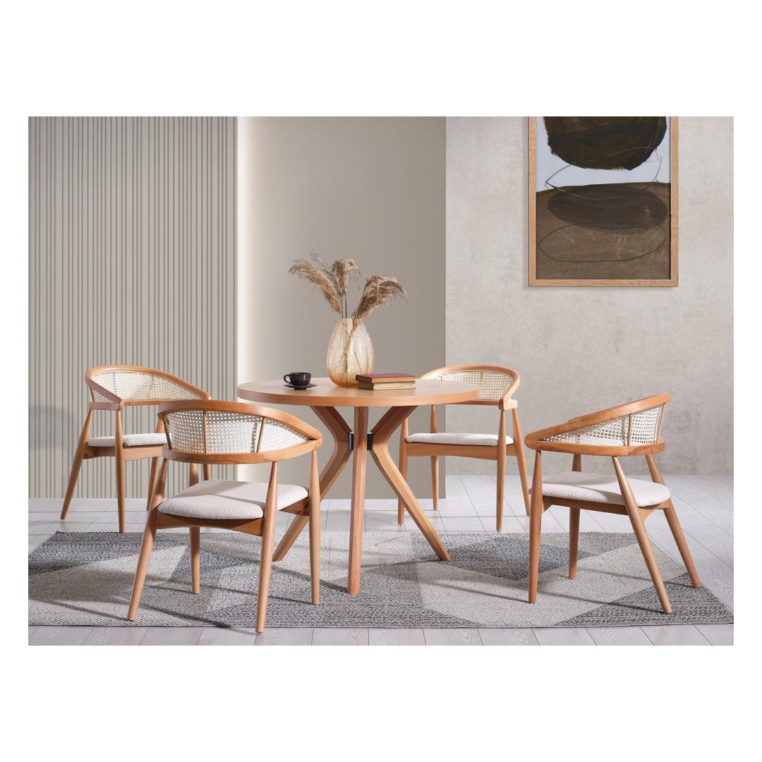 Muunna ruokasalisi lämpimäksi ja kutsuvaksi tilaksi upealla pyökkipöydällämme. Tämä pöytä on valmistettu 100 % korkealaatuisesta pyökistä, ja se huokuu eleganssia ja hienostuneisuutta. Luonnonpyökillä päällystetty mdf-pinta tuo pöytään nykyaikaista tunnelmaa säilyttäen samalla klassisen ilmeen. Paranna ruokailukokemustasi Kuvittele kokoontuvasi tämän kauniin pöydän ääreen rakkaidesi kanssa, jakamaan ateria ja luomaan muistoja, jotka kestävät koko elämän. Puun luonnollinen väri tuo lämpöä ja kodikkuutta mihin tahansa ruokasaliin, joten se on täydellinen keskipiste perheillallisille ja ystävien kanssa kokoontumisille. Laadukasta käsityötäMeidän pyökkipuinen ruokapöytämme ei ole ainoastaan esteettisesti miellyttävä, vaan myös kestävä. Tukeva rakenne takaa kestävyyden ja vakauden, joten voit nauttia tästä pöydästä vuosien ajan. Kevyt muotoilu ja selkeät linjat tekevät siitä monipuolisen kappaleen, joka sopii mihin tahansa sisustustyyliin. Mitat: leveys 100 cm, korkeus 75 cm, syvyys 100 cm.Väri: puun luonnonväri(t) Väri: Luonnollinen