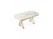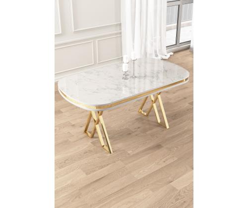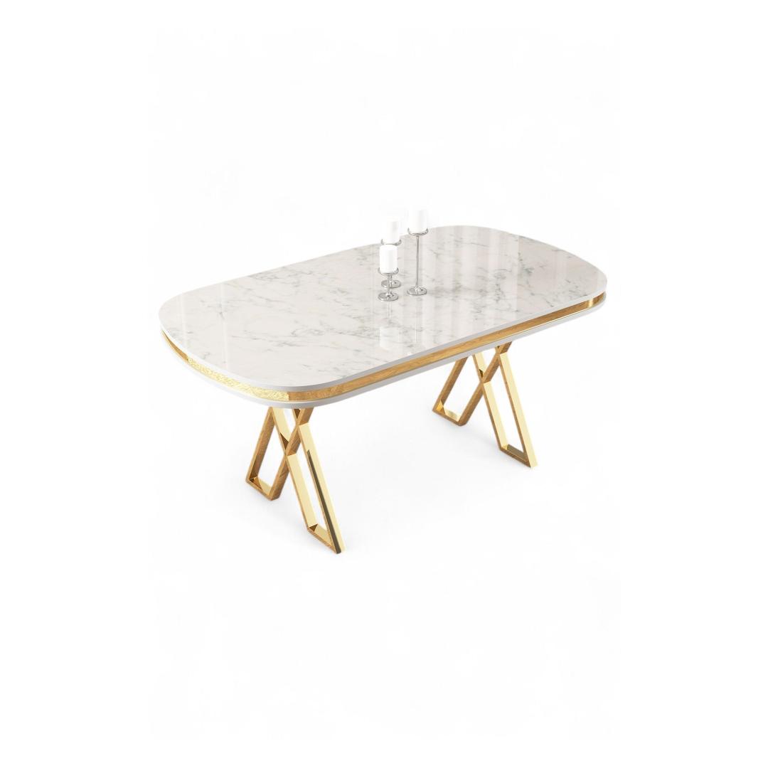Muuda oma söögituba luksuslikuks pelgupaigaks meie hämmastava söögilaua abil. Valmistatud 100% lakitud paneelist ja stiilsetest metalljalgadest, kiirgab see laud elegantsi ja rafineeritust. Valge marmi ja kuldsete aktsentide kombinatsioon lisab igasse ruumi veidi luksust, muutes selle ideaalseks keskpunktiks sinu kodus.Tõsta oma söögikogemus uuele tasemeleKujutle, et korraldad õhtusööke ja koosolekuid selle kauni söögilaua ümber. Sile lakitud paneeli pind on mitte ainult visuaalselt meeldiv, vaid ka lihtne puhastada, tagades, et sinu laud näeb alati laitmatu välja. Tugevad metalljalad pakuvad stabiilsust ja tuge, võimaldades sul nautida sööke pereliikmete ja sõpradega muretult.Tehke avaldusTehke julge avaldus selle modernse ja šika söögilauaga. Unikaalne disain ja värvikombinatsioon muudavad selle igas ruumis silmapaistvaks, lisades sinu sisustusele veidi glamuurset hõngu. Olgu tegemist juhusliku eine või ametliku õhtusöögiga, see laud jätab mulje sinu külalistele ja tõstab sinu söögikogemuse taset.Tehnilised andmed:Materjal: 100% lakitud paneelJalad: MetallMõõdud: Laius 168 cm, Kõrgus 76 cm, Sügavus 90 cmVärv: Valge marmor ja kuld Värv: White Marble Gold