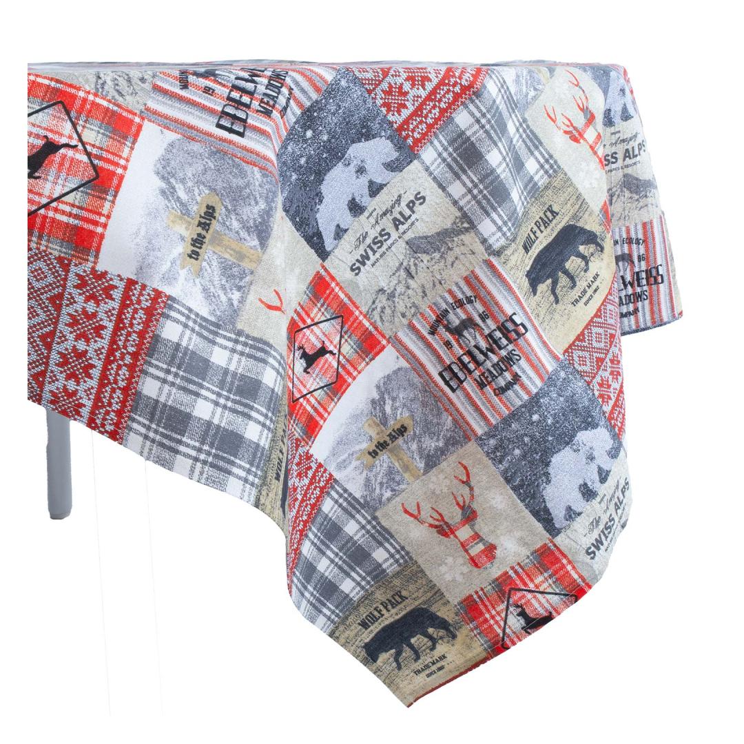 Pöytäliina WINTER 170x170cm, talvi ja eläimet, 50% puuvilla, 50% polyesteri, kangas 454