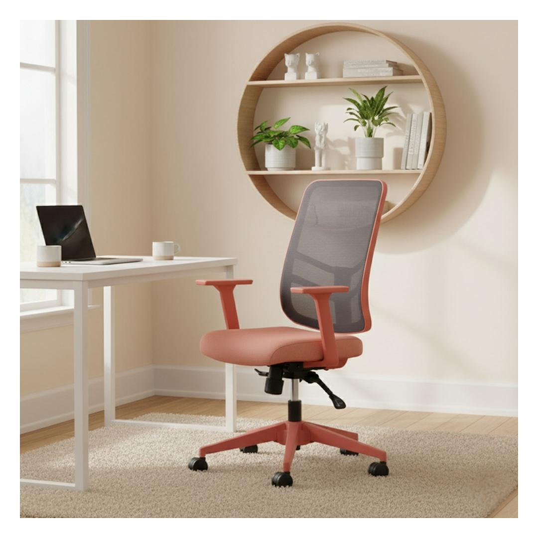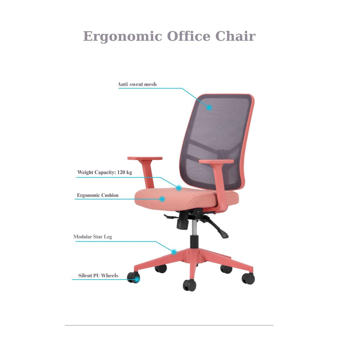Not only is our office chair comfortable, but it also adds a touch of style to your workspace. The salmon color is modern and chic, making it the perfect addition to any office decor. The frame is made of 100% plastic, ensuring durability and longevity.