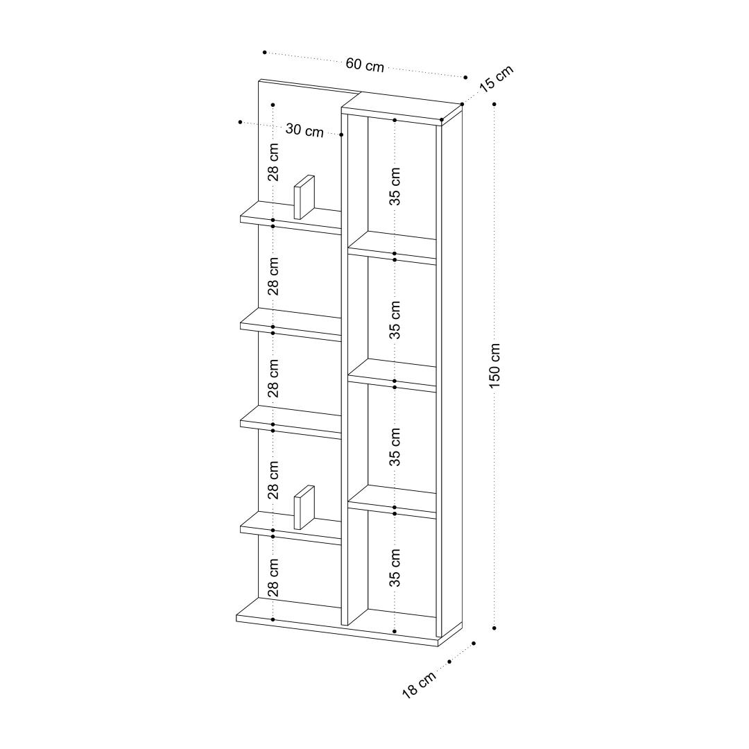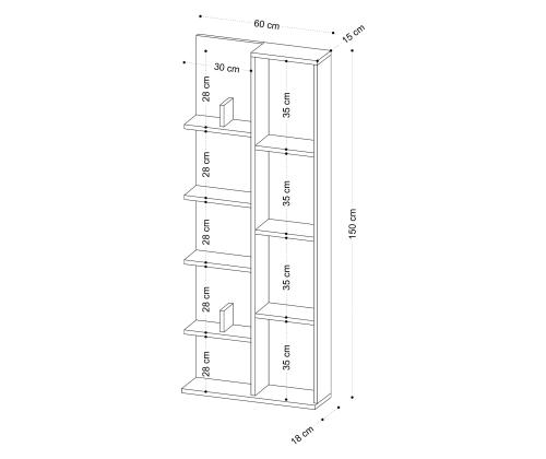 Width: 60 cm Height: 150 cm Depth: 18 cm