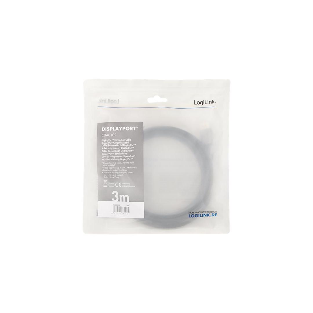 LOGILINK CDA0102 DisplayPort cable DP/M to DP/M 4K/60 Hz aluminum black/grey 3m LOGILINK CDA0102 DisplayPort cable DP/M to DP/M 4K/60 Hz aluminum black/grey 3m