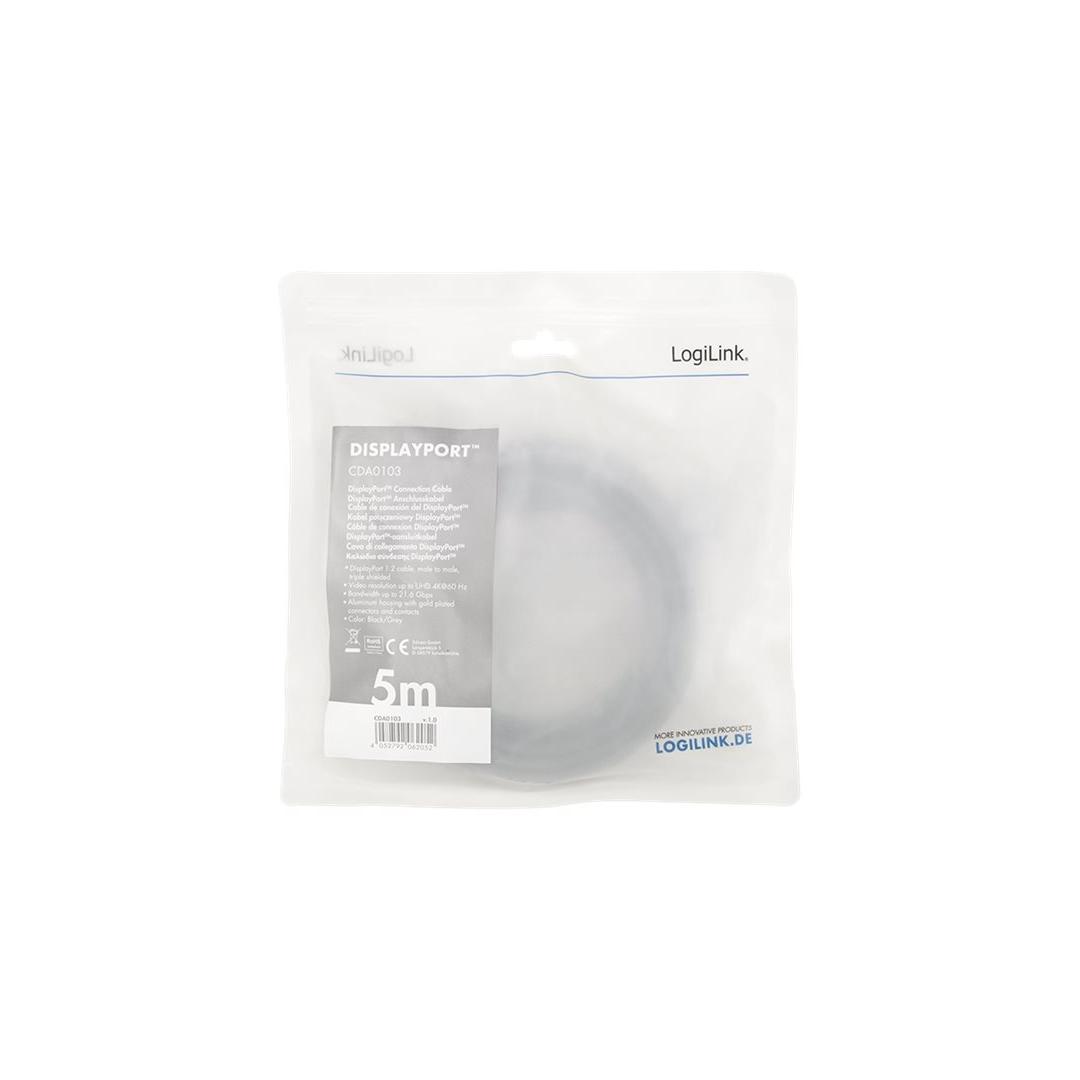 LOGILINK CDA0103 DisplayPort cable DP/M to DP/M 4K/60 Hz aluminum black/grey 5m LOGILINK CDA0103 DisplayPort cable DP/M to DP/M 4K/60 Hz aluminum black/grey 5m