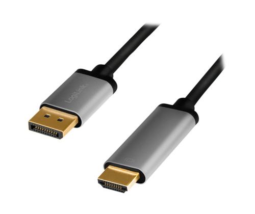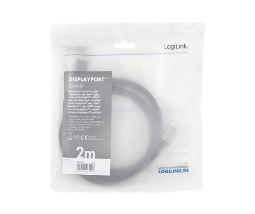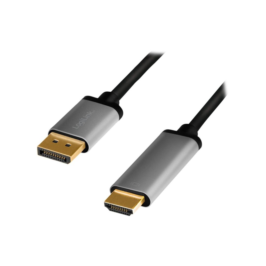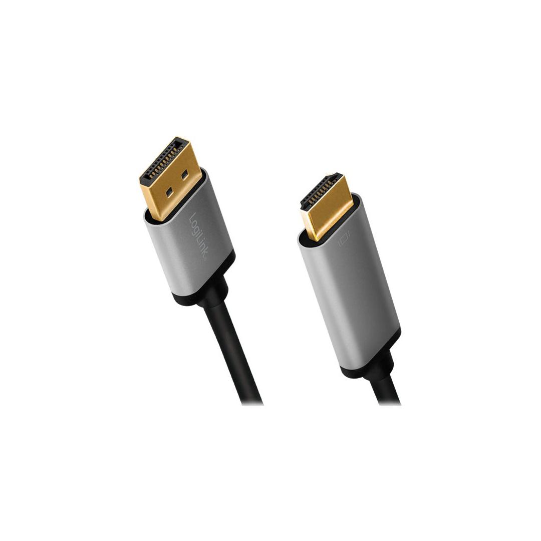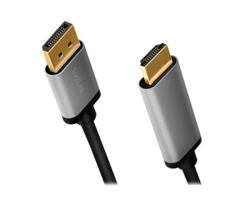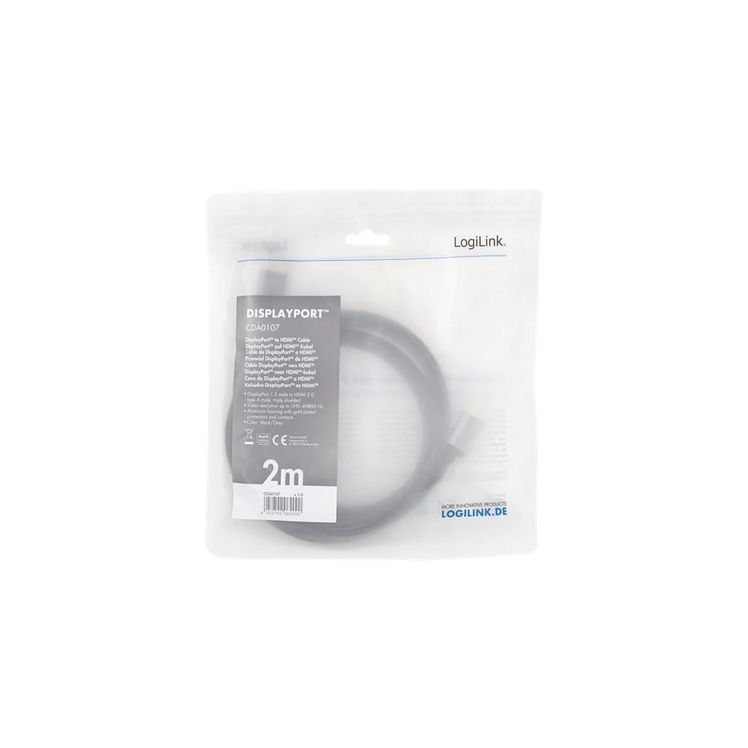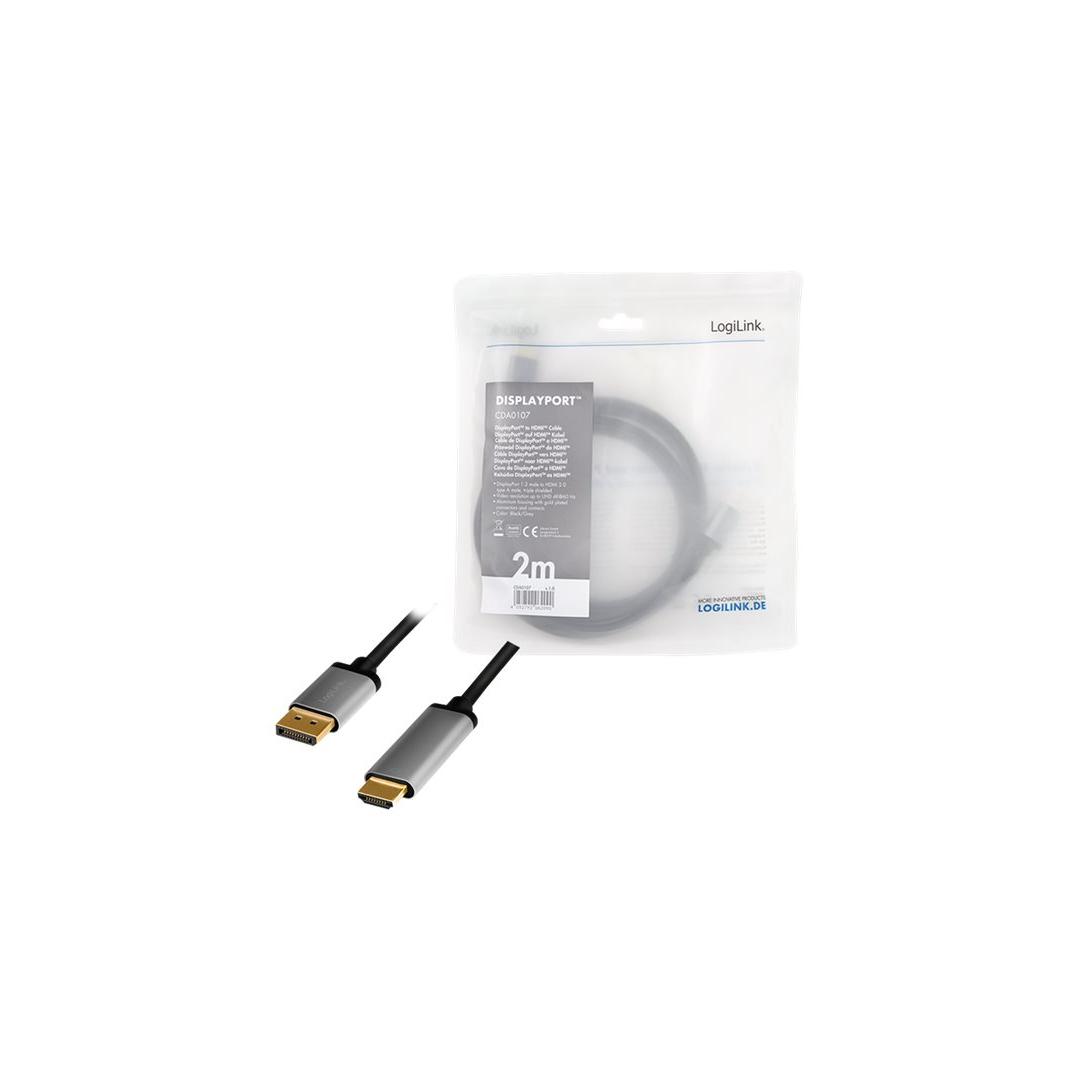 LOGILINK CDA0107 DisplayPort cable DP/M to HDMI A/M 4K/60 Hz aluminium black/grey 2m LOGILINK CDA0107 DisplayPort cable DP/M to HDMI A/M 4K/60 Hz aluminium black/grey 2m