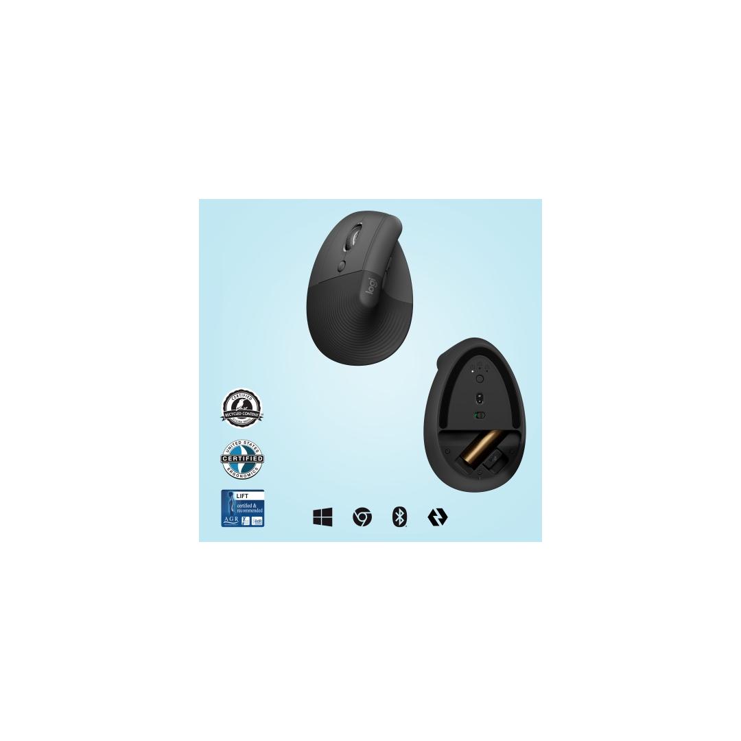 Logitech LIFT vasen langaton hiiri, RF Wireless + Bluetooth, 4000 DPI, grafiittipunainen