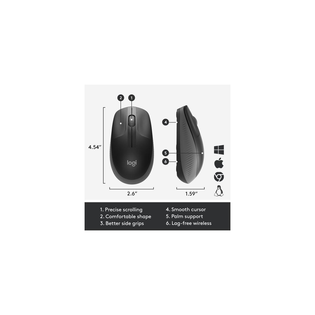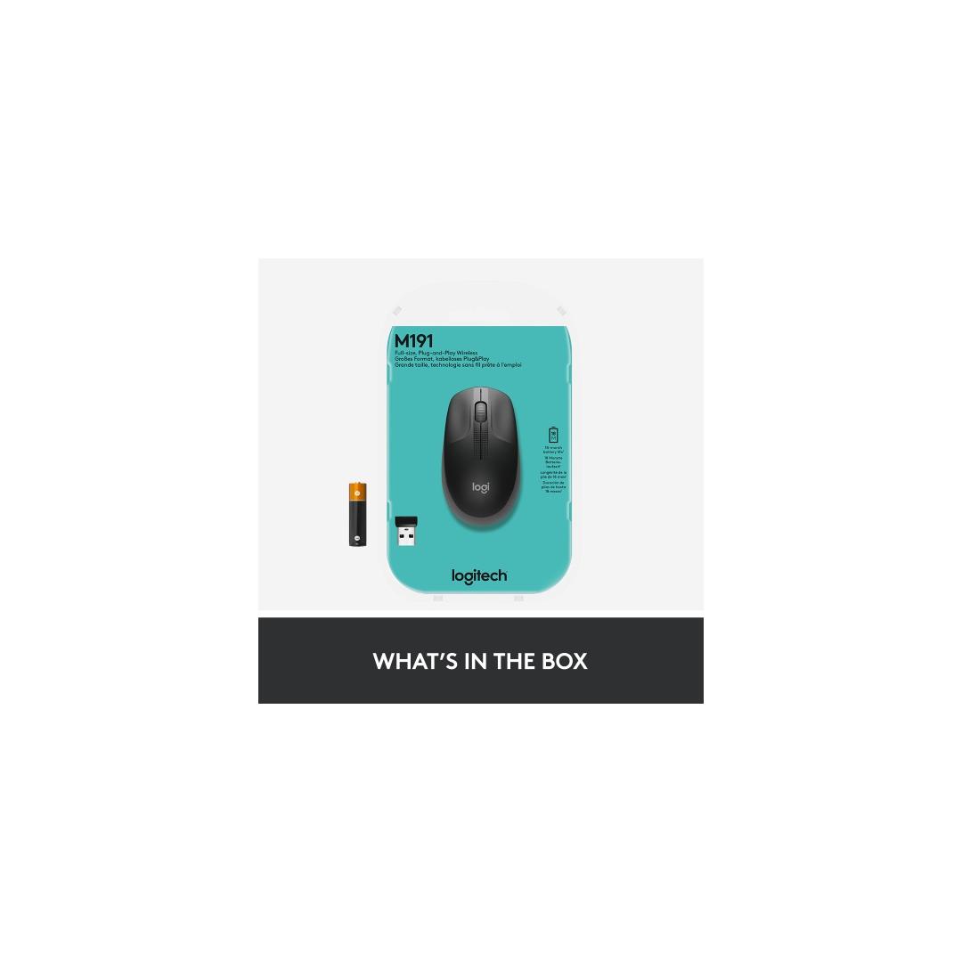 Logitech M190 täysikokoinen langaton hiiri, langaton RF, 1000 DPI, hiilenvärinen