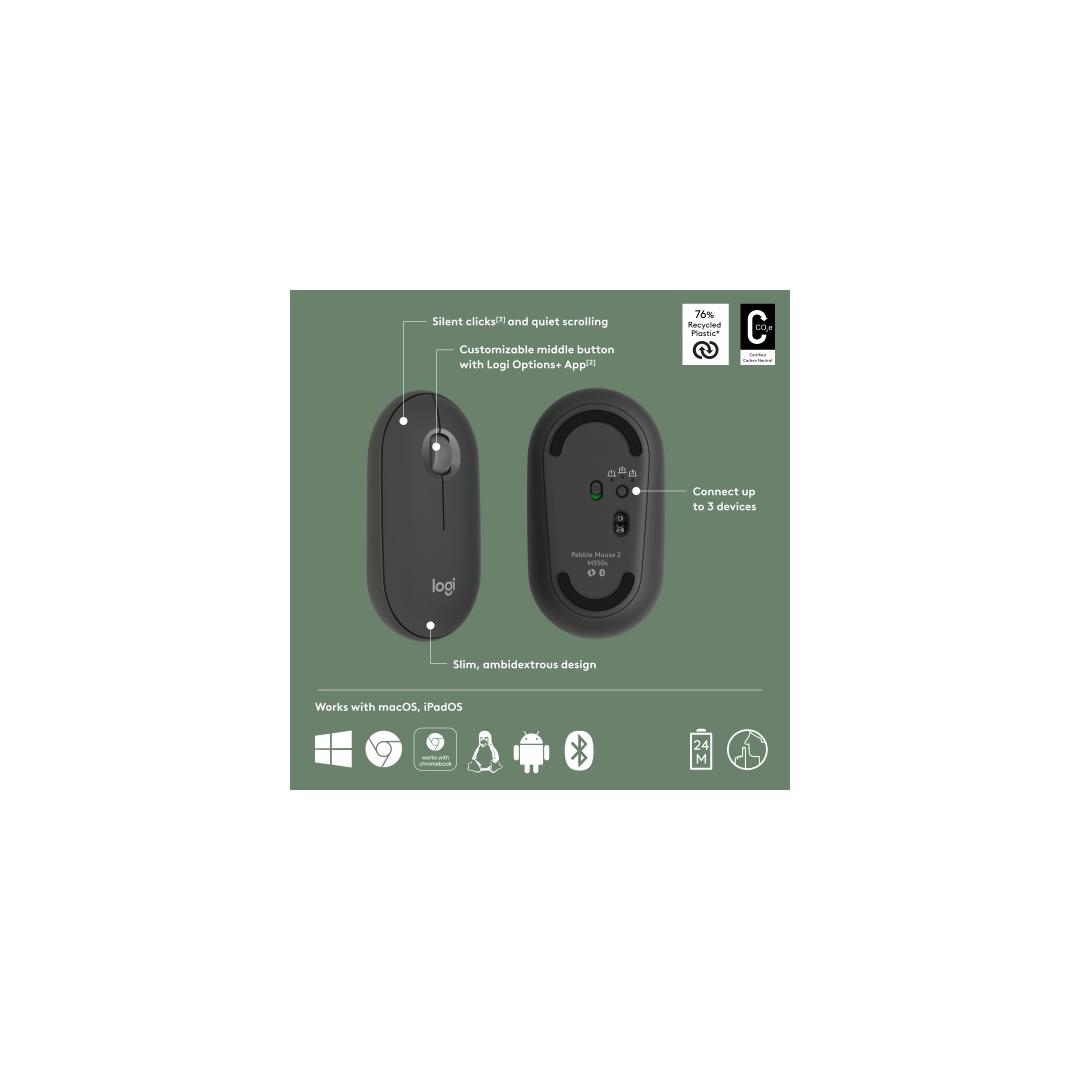 Logitech Pebble 2 M350s langaton hiiri, langaton RF + Bluetooth, 4000 DPI, sävyltään grafiittinen