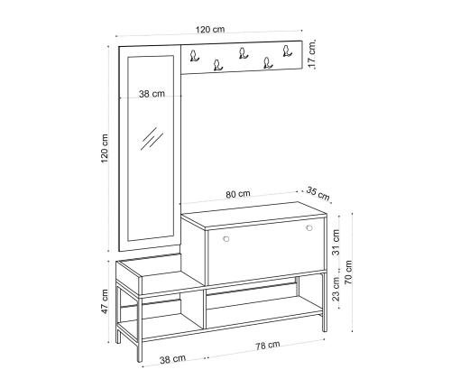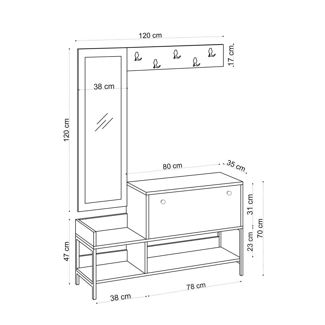 Width: 120 cm Height: 70 cm Depth: 35 cm