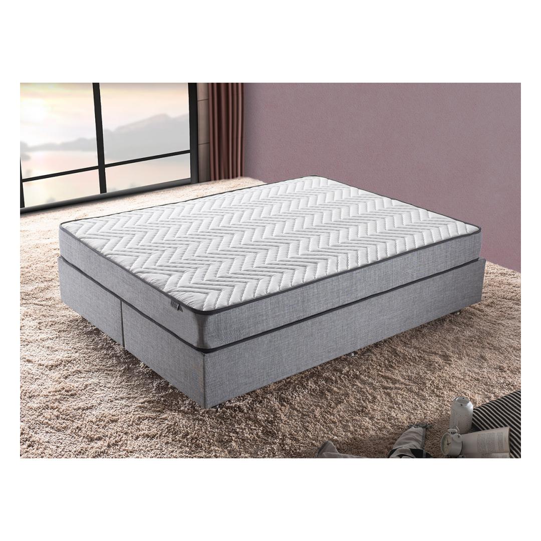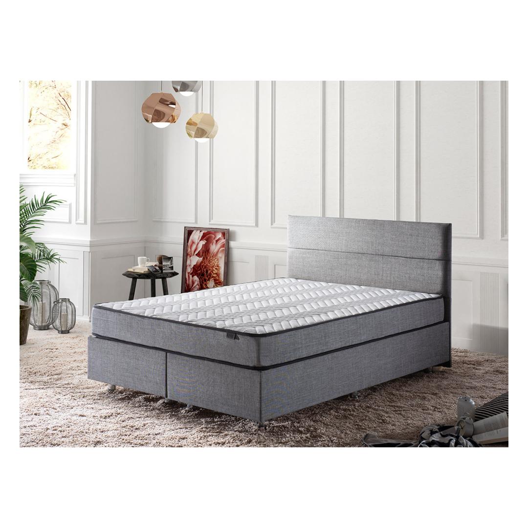 Kogege ülimatut mugavust ja luksust meie kaheinimese madratsi, aluse ja peatoe komplektiga. See moodsa ja uudse kontseptsiooniga disainitud toode sobib ideaalselt neile, kes otsivad oma magamistoas nii stiili kui ka funktsionaalsust. Päratu mugavusUppuge meie kaheinimese madratsi pehmusse, millel on mitme vedruga süsteem, mis pakub erakordset tuge ja kõrvaldab survepunktid. Kootud kangast kate lisab elegantsi ja tagab pehme ja hubase tunde igal ööl.Tugev ja vastupidavSee terasraami ja mdf-servadega valmistatud madratsikomplekt on valmistatud kestma. 30 x 30 cm terasprofiil tagab stabiilsuse ja tugevuse, samas kui õhukapslitehnoloogiaga voodipõhi pakub optimaalset ventilatsiooni jaheda ja värskendava une tagamiseks. Elegantne disainSuurendage oma magamistoa esteetilisust meie stiilse peatoega. Oma elegantse ja kaasaegse disainiga lisab see igale sisustusele rafineeritust. Toote hall värvus lisab teie ruumile rahulikkust ja rahulikkust. Mugavus teie käeulatusesSee komplekt sisaldab kirstu mugavaks hoiustamiseks, mis võimaldab teil hoida oma magamistuba segadusteta. Turvalukk tagab, et teie asjad on alati turvaliselt hoiul. Tehnilised üksikasjad:Raam: TerasestKangas: Kangas: 100% Soho kangasVoodipõhja mõõtmed: Laius: 140 cm, kõrgus: 38 cm, sügavus: 190 cm.Peaplaadi mõõtmed: 1,5 cm: Laius: 140 cm, kõrgus: 100 cm, sügavus: 5 cmVoodipõhja kõrgus: 28 cmJalgade kõrgus: 10 cmKuus jalga lisavad stabiilsustVoodipõhja õhukapsel optimaalse ventilatsiooni tagamiseksTurvalukk turvaliseks hoiustamiseksKaasas kirst mugavaks organiseerimiseksMadratsi mõõtmed: Laius: 140 cm, kõrgus: 21 cm, sügavus: 190 cmKate: Kootud kangasMulti Spring System erakordse toe tagamiseksVärv: Hall Värv: Grey