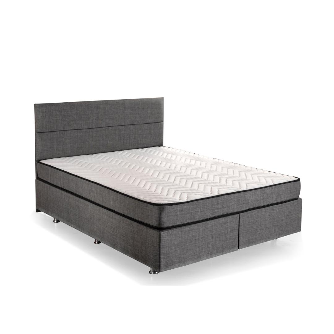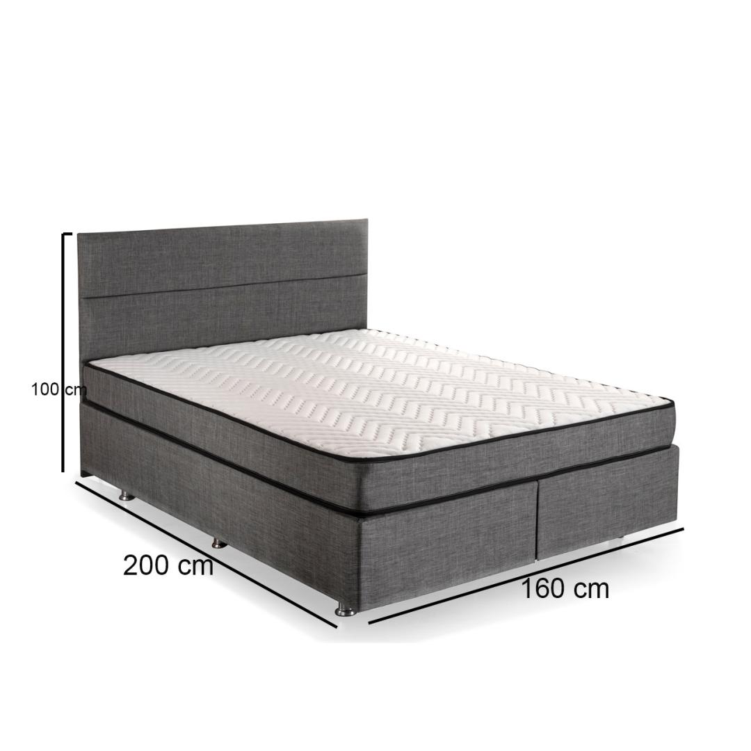 Kogege ülimat mugavust ja luksust meie kahekordse madratsi, aluse ja peatoe komplektiga. See moodsa ja uudse kontseptsiooniga disainitud toode sobib ideaalselt neile, kes hindavad stiili ja kvaliteeti. Võrratu mugavus ja tugiUppuge meie kaheinimese madratsi pehmusse, mis on varustatud mitme vedruga süsteemiga, mis pakub optimaalset tuge teie keha igale sentimeetrile. Ärkke värskendatuna ja noorendatuna, valmis alustama järgmist päeva.Stiilne ja elegantne disainSuurendage oma magamistoa esteetilist atraktiivsust meie elegantse ja rafineeritud voodipõhja ja peaplaadiga. 100% soho kangas lisab elegantsust, samas kui hall värv täiendab iga sisekujundust. Kindel ja vastupidav konstruktsioonSee terasraami ja mdf-servadega valmistatud kaheinimese madratsikomplekt on valmistatud kestma. 30 x 30 cm terasprofiil tagab stabiilsuse ja vastupidavuse, samas kui voodipõhja õhukapsel ja turvalukk pakuvad lisaturvalisust. Mugav ja praktiline160 cm laiuse ja 200 cm sügavusega kaheinimese madratsikomplekt pakub piisavalt ruumi mugavaks ööbimiseks. Kaasasolev kirst pakub lisakohvrit teie asjade jaoks, hoides teie magamistoa korralikuna ja organiseerituna. Tehnilised üksikasjad:Raam: TerasestKangas: Kangas: 100% SOHO kangasVoodipõhi: Laius: 160 cm, kõrgus: 38 cm, sügavus: 200 cm.Peaplaat: Laius: 160 cm, kõrgus: 100 cm, sügavus: 5 cmVoodipõhja kõrgus: 28 cmJalgade kõrgus: 10 cmKuus jalgaVoodipõhi õhukapselTurvalukkKaasas kirstMadrats: Laius: 160 cm, kõrgus: 21 cm, sügavus: 200 cm.Kate: Kootud kangasMulti Spring SystemVärv: Hall Värv: Grey