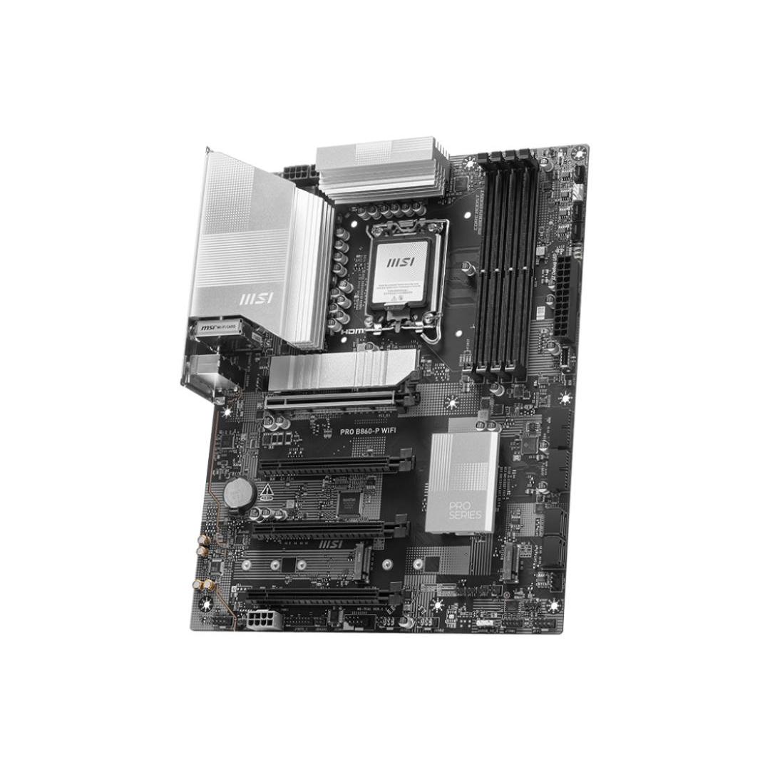 PRO B860-P WIFI tarjoaa yksinkertaisen muotoilun ja harmonisen hopeanvärisen värimaailman, joka sopii täydellisesti yhteen sekä valkoisten että mustien tietokoneiden kanssa. Se on suunniteltu monilla MSI:n yksinoikeusominaisuuksilla, aidolla Wi-Fi 7:llä EZ-antennilla, 5G LAN:lla, Thunderbolt 4:llä, PCIe 5.0 M.2:lla ja Supplemental PCIe Powerilla, joka on valmis Intel® Core™ Ultra -prosessoreille.