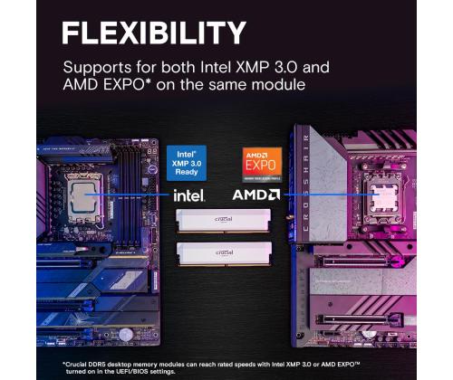 - Support for both Intel XMP 3.0 and AMD EXPO™ on the same module