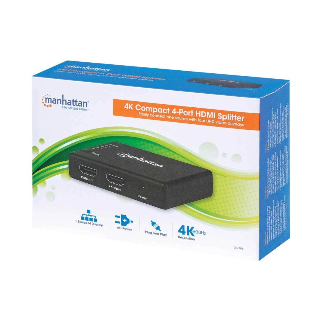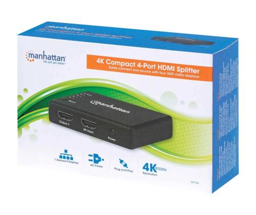 MANHATTAN 4K Compact 4-Port HDMI Splitter black 4K30Hz AC Powered MANHATTAN 4K Compact 4-Port HDMI Splitter black 4K30Hz AC Powered