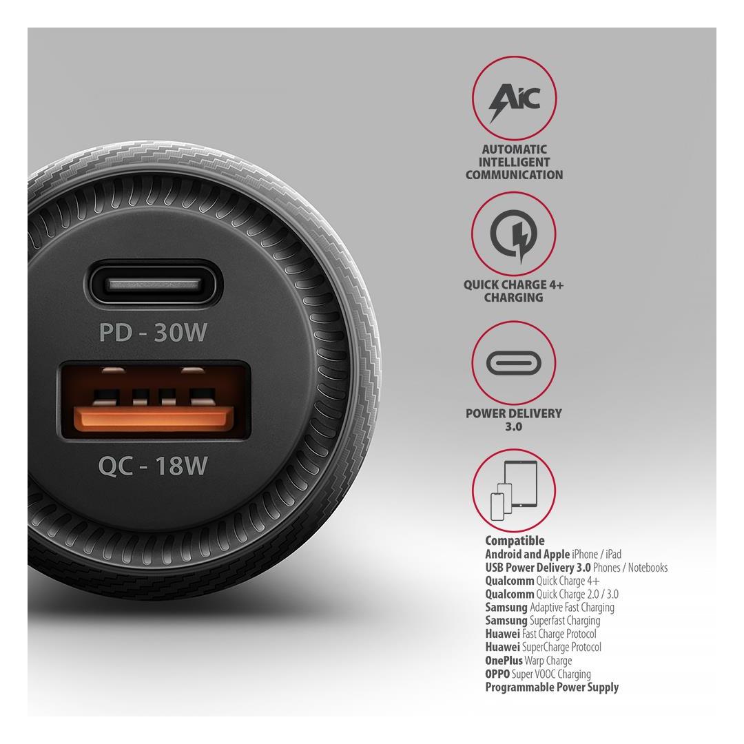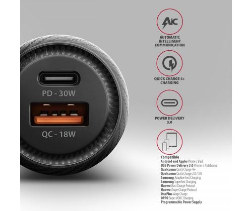 PWC-PQ48 PD3.0 & QC4+ 2xOUTPUTS car charger 48W