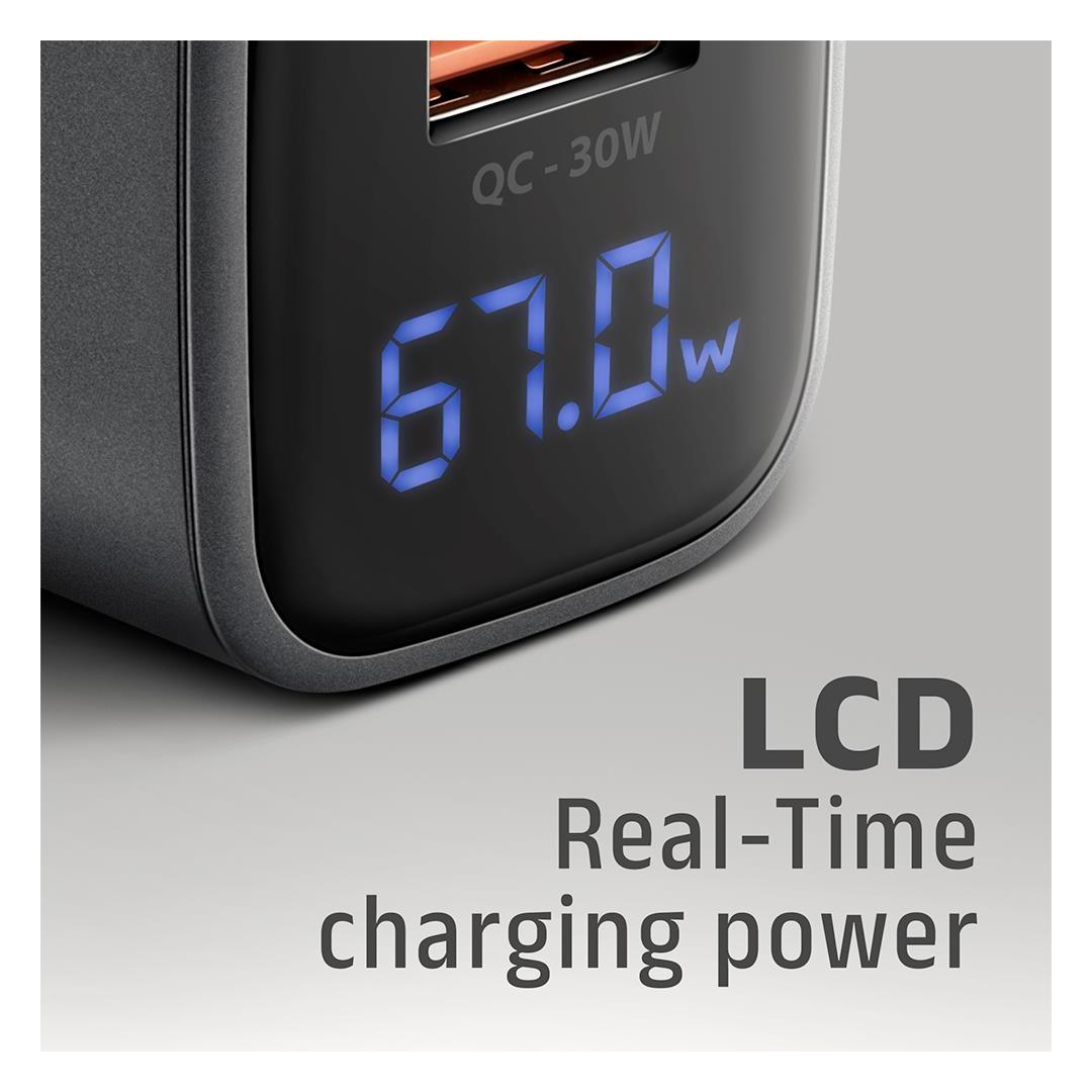 ACU-PQ67D PD3.0 & QC4+ 2xOUTPUTS, LCD display, wall charger 67W