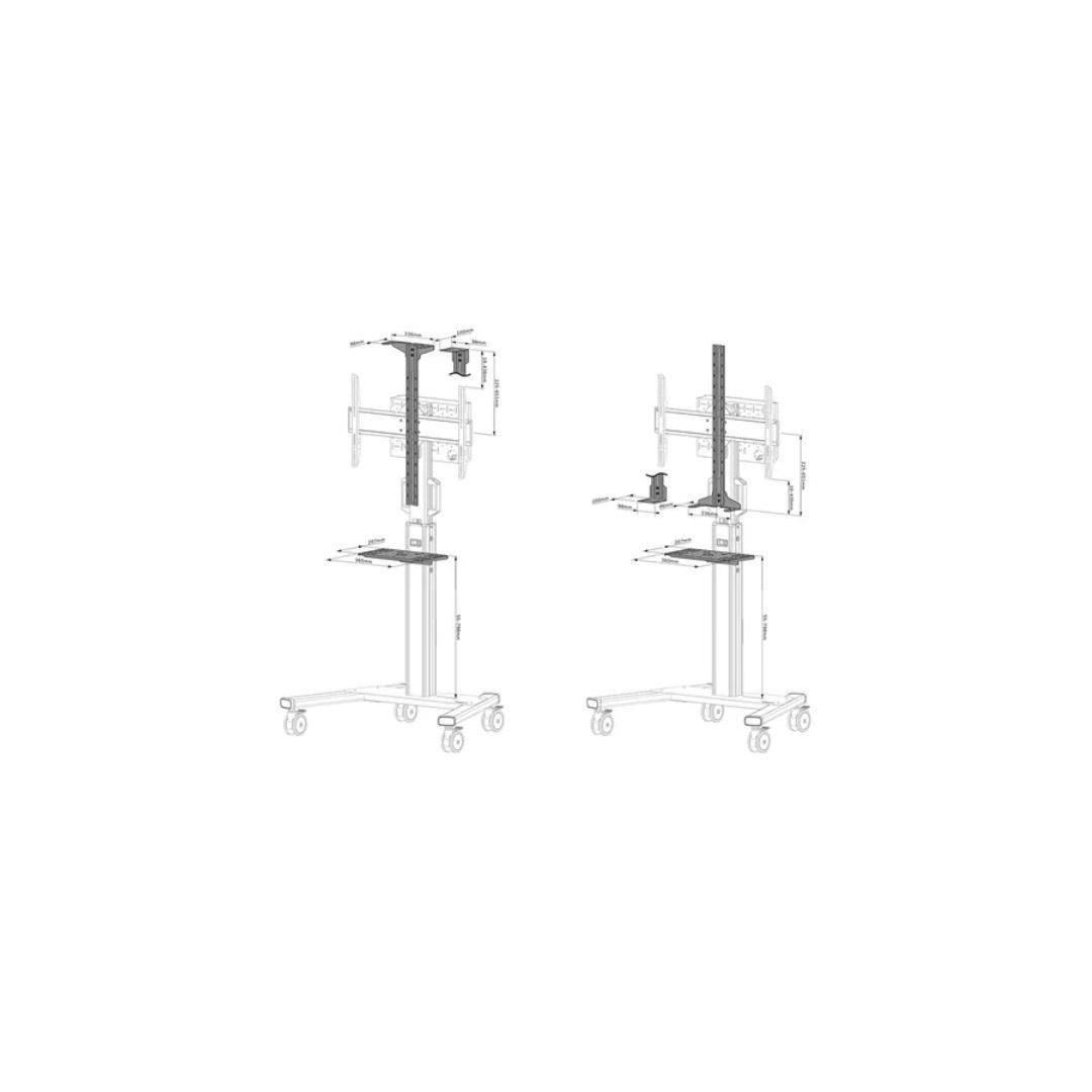 The Neomounts Select AFLS-825BL1 is a videobar & multimedia kit optional for the FL50S-825BL1 mobile floor stand. The kit enables the installation of a separate cam shelf and multimedia device shelf to the trolley. The universal cam shelf can be installed both above and below the screen and is adjustable in height, to fit the screen. Additionally, the cam shelf can be mounted both on the front and back of the stand. Included to the kit is an adapter for the Logitech Rally Bar and Rally Bar Mini (also both placeable above and below the screen). In addition, the universal multimedia shelf is suitable for installation of i.a. the Logitech Tap.