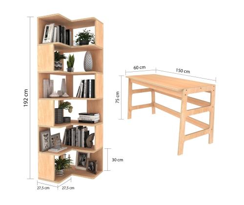 Muuda oma õpingute ruum produktiivsuse ja korralduse pelgupaigaks meie õpingute laua ja raamaturiiuli komplektiga. Valmistatud 100% HORNBEAM PUIDUST, on see komplekt mitte ainult vastupidav, vaid kiirgab ka loomulikku võlu, mis tõstab teie toa esteetikat.Tõhus OrganiseerimineÜtle hüvasti segadusele ja tere tõhususele, kasutades raamaturiiuli ja õpingute laua mitmeid riiuleid. Hoia oma raamatud, kirjutusvahendid ja muud vajalikud asjad korralikult organiseerituna ja käeulatuses, et tagada sujuv õpikogemus.Ruumi säästev disainRaamaturiiuli kinnitamise võimalus seinale aitab sul säästa väärtuslikku põrandapinda, samal ajal kui saad nautida täissuuruses raamaturiiuli funktsionaalsust. Õpingute laua elegantne disain tagab ka, et see ei võta sinu toas liigset ruumi.Aegumatu ElegantsToote loomulik värv lisab sinu õpingute ruumile aegumatut elegantsi, muutes selle mitmekülgseks lisandiks, mis sobib igasuguse sisustuse stiiliga. Olgu sul minimalistlik välimus või hubane atmosfäär, see komplekt sulandub sujuvalt.Uuenda oma õpingute ruumi meie õpingute laua ja raamaturiiuli komplektiga ning koge ideaalset tasakaalu funktsionaalsuse ja stiili vahel. Tellige oma täna ja astuge esimene samm korralikuma ja inspireerivama õpikeskkonna suunas.Tehnilised andmed:Materjal: 100% HORNBEAM PUIDURaamaturiiuli mõõdud: Laius: 55 cm, Kõrgus: 192 cm, Sügavus: 27 cmÕpingute laua mõõdud: Laius: 150 cm, Kõrgus: 75 cm, Sügavus: 60 cmVärv: Loomulik värv(ide)Saab kinnitada seinale ruumi säästmise eelisteks Värv: Natural