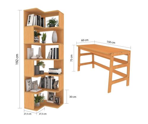 Muuda oma õpingute ruum produktiivsuse ja korralduse paradiisiks meie kauni õpingute laua ja raamaturiiuli komplektiga. Valmistatud 100% HORNBEAM PUIDUST, on see komplekt mitte ainult vastupidav, vaid kiirgab ka ajatut elegantsi, mis tõstab esile iga ruumi sisustust.Lihtne korraldusRaamaturiiulil on arvukalt riiuleid ja avar lauaosa, mis annab sulle piisavalt ruumi oma raamatute, kirjutusvahendite ja muude oluliste asjade hoidmiseks. Ütle hüvasti segadusele ja tere korrastatud, inspireerivale tööruumile.Elegantne disainSelle komplekti elegantne disain lisab sinu õpingute või kodukontori ruumile peenust. Toote teakivärv sulandub vaevata olemasoleva mööbliga, luues ühtse ja stiilse ilme.Maksimeeri ruumÕpingute laud ja raamaturiiul saab kinnitada seina külge, muutes selle ideaalseks väiksematesse ruumidesse. Kasutades vertikaalset ruumi, saad maksimeerida oma toa kasutust ja luua funktsionaalse ja korraldatud ala tööks või õpinguteks.Uuenda oma õpingute ruumi meie õpingute laua ja raamaturiiuliga ning koge, millist erinevust see võib teha sinu produktiivsuses ja üldises heaolus. Tellige oma täna ja astuge esimene samm korraldatuma ja inspireerivama tööruumi suunas.Tehnilised andmed:Raamaturiiul: Laius: 55 cm, Kõrgus: 192 cm, Sügavus: 27 cmÕpingute laud: Laius: 150 cm, Kõrgus: 75 cm, Sügavus: 60 cmMaterjal: 100% HORNBEAM PUIDVärv: TeakivärvSaab kinnitada seina külge, et tagada lisastabiilsus ja ruumi säästmise eelised Värv: Teak