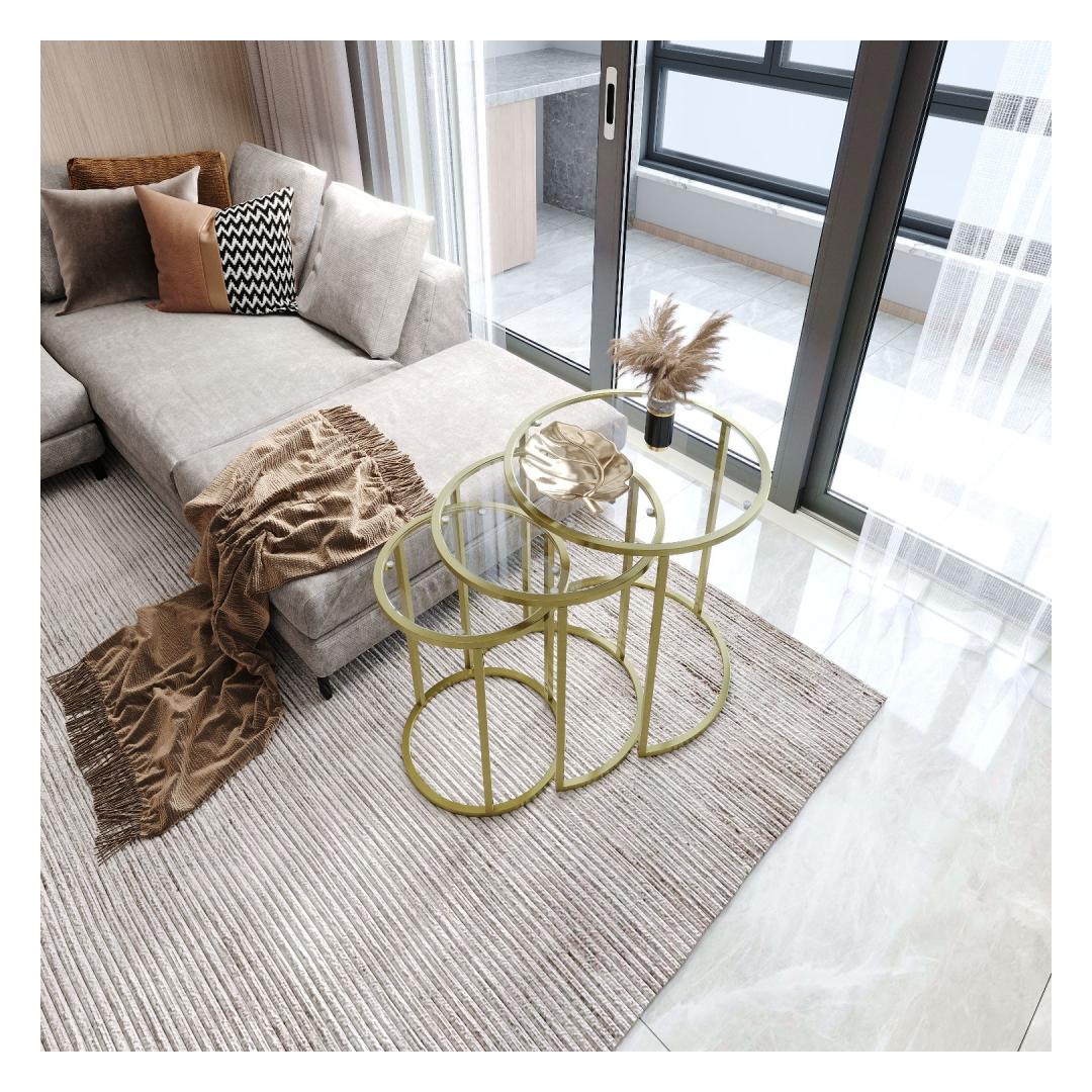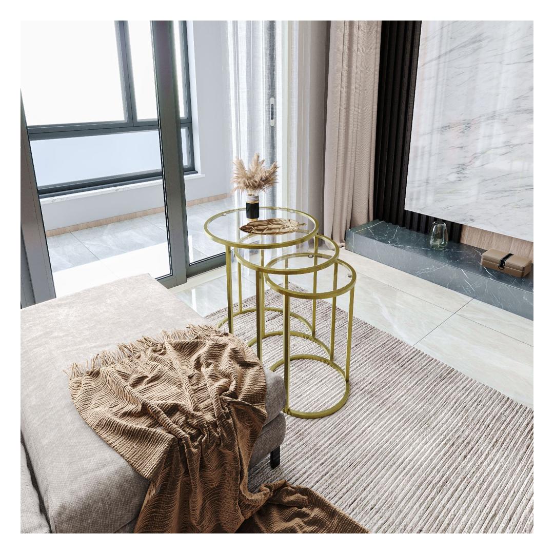 Are you looking to add a touch of elegance and sophistication to your living space? Look no further than our stunning Nesting Table set! This set of 3 tables is crafted with 100% tempered clear glass, giving it a sleek and modern look that will instantly elevate any room. The gold metal frame adds a touch of luxury, while the transparent glass top creates a sense of openness and light.