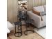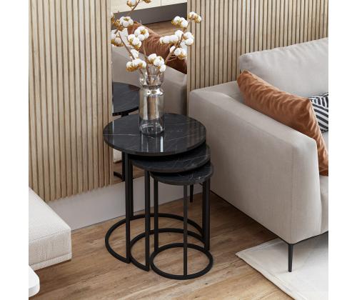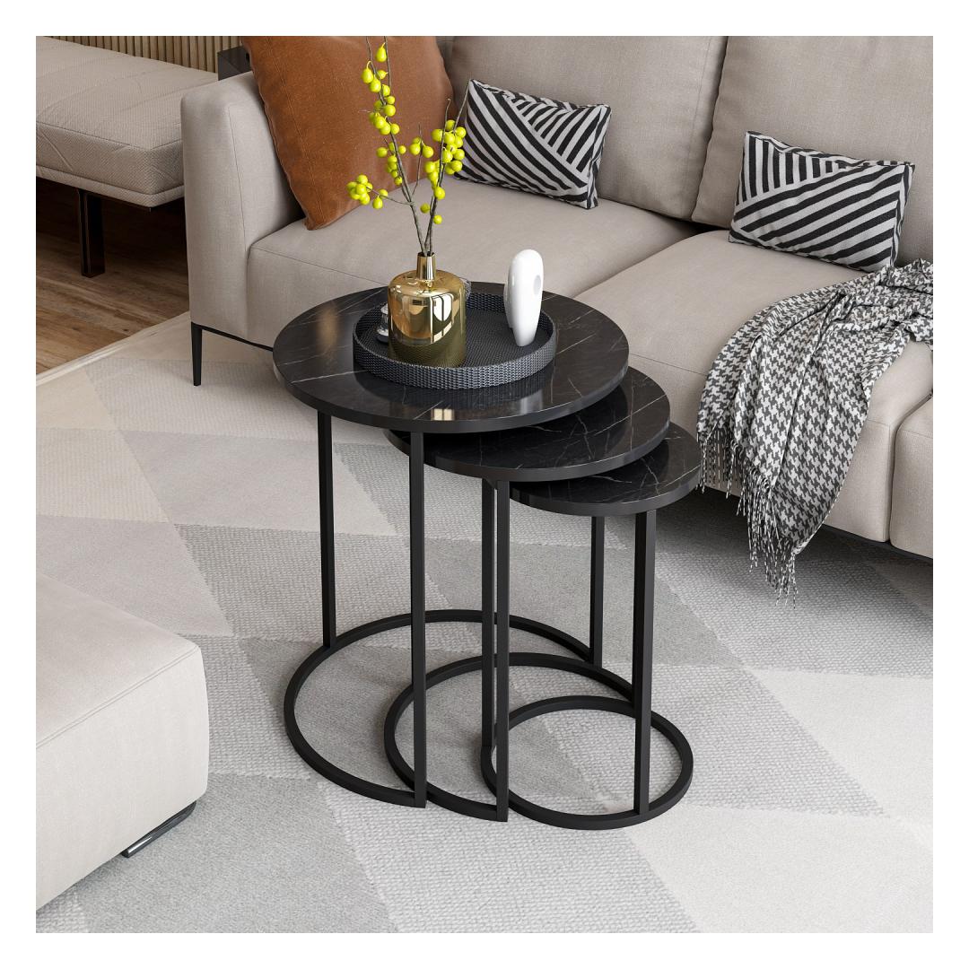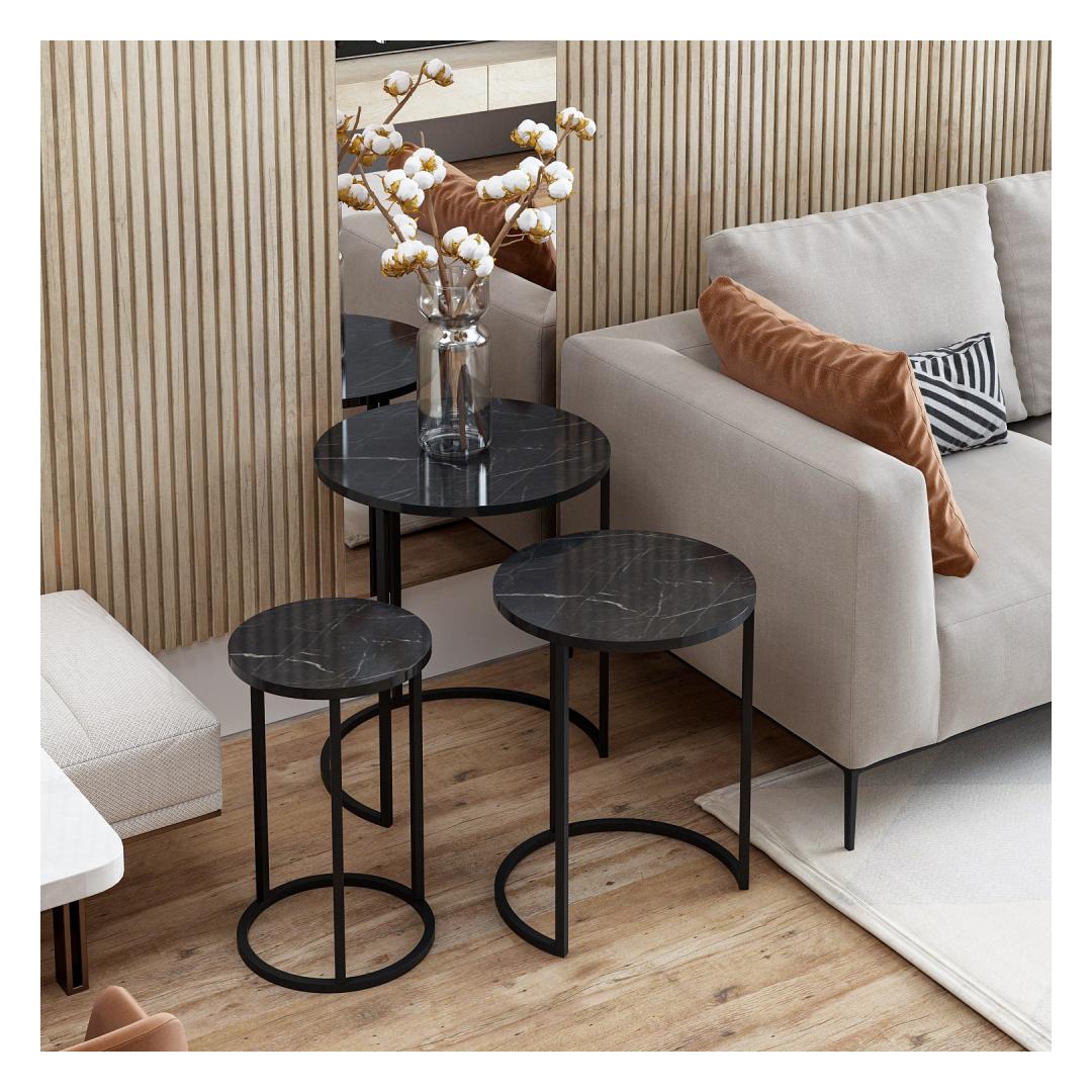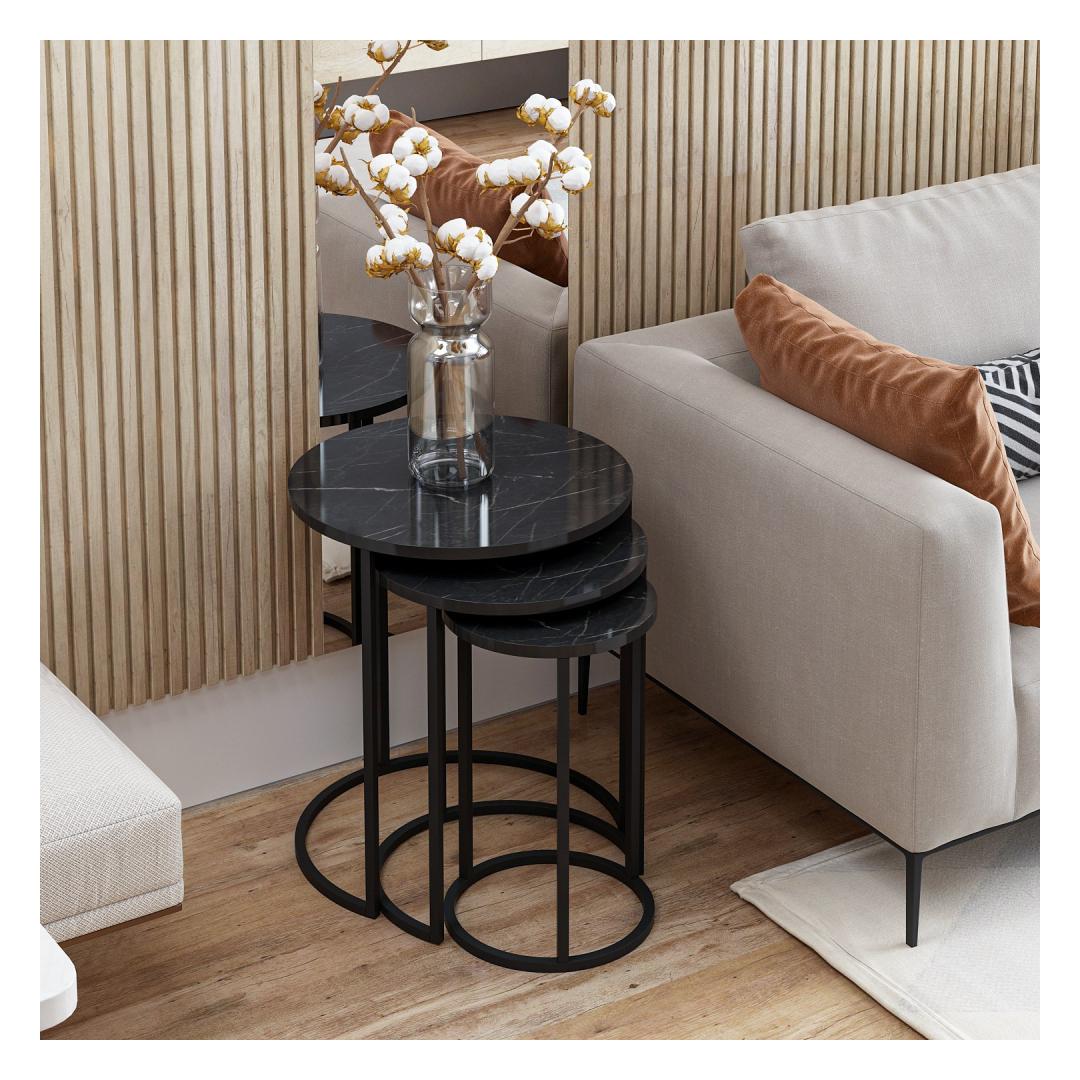 Täienda oma ruumi stiilse ja funktsionaalse pesitsuslaua komplektigaKas olete väsinud segast ja korrastamata eluruumist? ärge otsige enam! tutvustame meie peen pesitsuslaudade komplekti, mis on loodud nii stiili kui ka funktsionaalsuse toomiseks teie koju. Looge uimastavat visuaalset mõjuTäpse ja elegantselt valmistatud pesitsuslaudade komplekt on ideaalne täiendus igasse moodsasse või kaasaegsesse ruumi. Selle elegantne ja minimalistlik disain täiendab vaevata mis tahes sisekujundust, tõstes koheselt teie ruumi visuaalset atraktiivsust.Maksime oma ruumiKolme erineva suurusega pesaplaadid pakuvad mitmekülgsust nagu ükski teine. Kasutage neid koos, et luua mitmekihiline efekt või eraldage need oma erivajaduste rahuldamiseks. Kui teil on vaja lisapinda külaliste vastuvõtmiseks või mugavat kohta oma lemmikdekoratsioonide paigutamiseks, siis need lauad on teie jaoks sobivad. Võrratu vastupidavus ja kvaliteetValmistatud 100% melamiiniga kaetud puitlaastplaadist, on need pesaplaadid ehitatud kestma. Tugev metallraam tagab stabiilsuse ja toe, mis võimaldab teil neid laudu nautida aastaid. Tehnilised üksikasjad:Materjal: materjal: 100% melamiiniga kaetud puitlaastplaatPaksus: 18 mmMetallraam lisab stabiilsustSuurused:Laius: 50 cm Kõrgus: 58 cm Sügavus: 50 cm (1 tk).Laius: 40 cm Kõrgus: 52 cm Sügavus: 40 cm (1 tk)Laius: 30 cm Kõrgus: 48 cm Sügavus: 30 cm (1 tk)Värv: MustÄrge jätke kasutamata võimalust muuta oma eluruum stiilseks ja korrastatud varjupaikaks. Tellige meie pesulaudade komplekt juba täna ja kogege täiuslik segu funktsionaalsusest ja elegantsist. Värv: Black