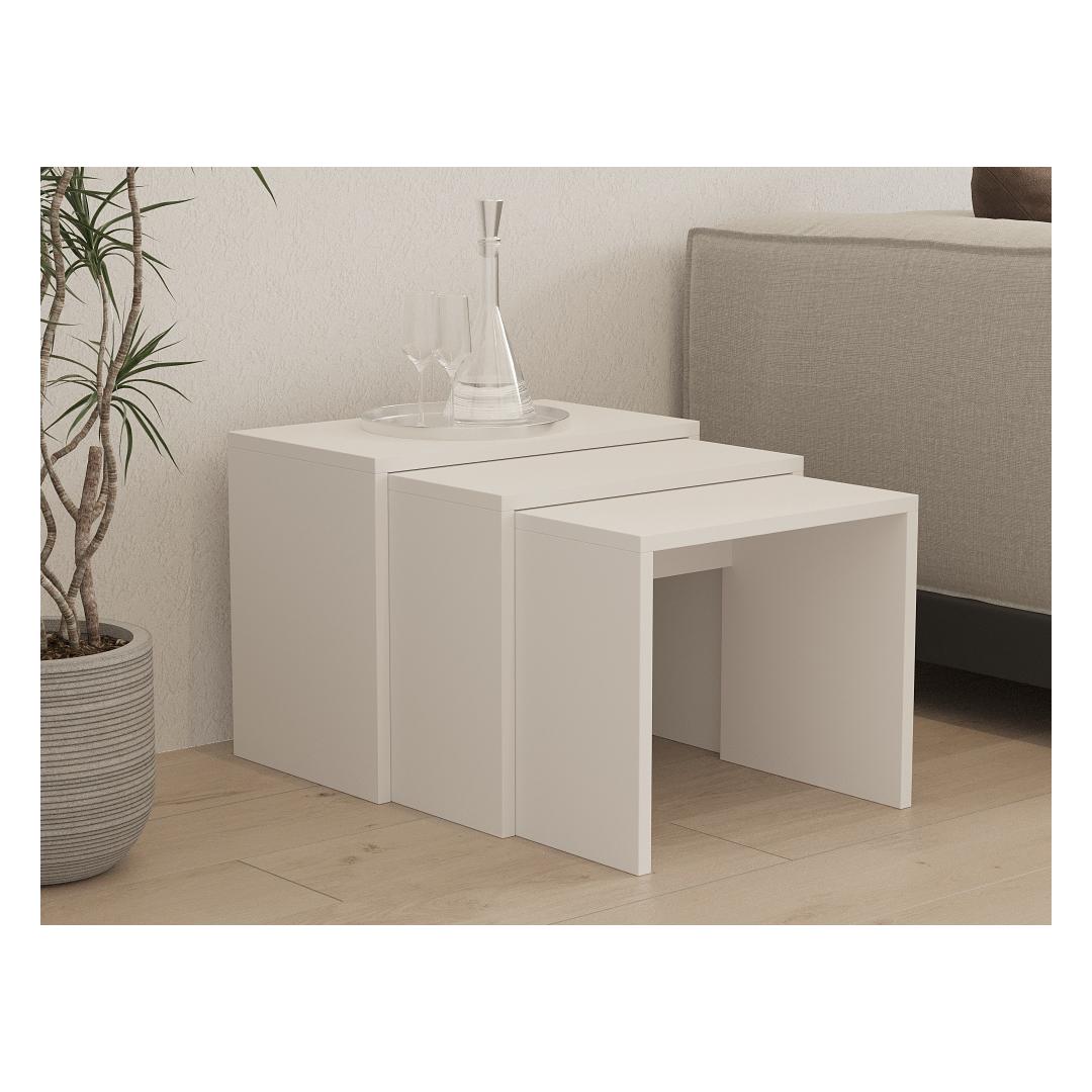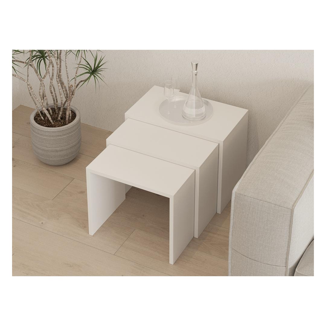 The clean lines and white color of our Nesting Tables create a sense of harmony and tranquility, instantly elevating the ambiance of any room. Whether you have a modern or traditional interior, these tables will seamlessly integrate into your existing decor, adding a touch of elegance and sophistication.