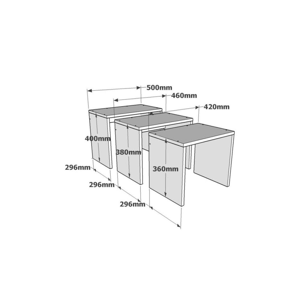 With their sleek and minimalist design, our Nesting Tables effortlessly blend functionality and style. Crafted with 100% melamine coated particle board, these tables are not only durable but also resistant to scratches and stains, ensuring they will stand the test of time.