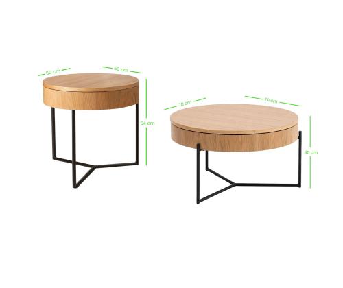 Loo stiilne ja funktsionaalne elutuba meie pesitsuslaudade komplektigaSoovite lisada oma koju elegantsust ja mitmekülgsust? ei vaata kaugemale kui meie uimastava pesitsuslaua komplekti. See kahest lauast koosnev komplekt on mõeldud iga eluruumi kaunistamiseks ja on ideaalne kombinatsioon stiilist ja funktsionaalsusest. Tõstke oma sisekujundust ajatu disainigaNeed ülima täpsusega valmistatud pesaplaadid on valmistatud 100% mdf-ist, mis tagab vastupidavuse ja pikaealisuse. Looduslik värv lisab igasse ruumi soojust ja elegantsust, muutes selle ideaalseks täienduseks teie kodu sisustusele. Versatiivsed ja ruumi säästvadKahe erineva suurusega pesitsuslauad pakuvad lõputuid võimalusi oma ruumi korrastamiseks ja kujundamiseks. Kasutage neid koos, et saavutada mitmekihiline välimus, või eraldage need, et luua oma ruumis mitu fookuspunkti. Kompaktne disain võimaldab neid hõlpsasti ära panna, kui neid ei kasutata, mistõttu sobivad need ideaalselt väikestesse korteritesse või piiratud ruumidesse. Tugev ja usaldusväärne konstruktsioonMetallist jalad tagavad tugeva aluse, mis tagab teie asjadele stabiilsuse ja toe. Kas kasutate neid dekoratiivsete esemete väljapanekuks, oma lemmikraamatute hoidmiseks või mugava joogipinnana, need lauad on ehitatud nii, et nad peavad vastu igapäevasele kasutamisele. Tehnilised üksikasjad:Materjal: 100% MDFMetallist jalad lisavad stabiilsustMõõdud:Suur laud: Laius: 70 cm, kõrgus: 70 cm, sügavus: 40 cm.Väike laud: Laius: 50 cm, kõrgus: 54 cm, sügavus: 50 cm.Värv: naturaalneElustage oma eluruumi meie pesitsuslaudade komplektiga ja kogege stiili ja funktsionaalsuse täiuslikku segu. Ärge jätke kasutamata seda võimalust muuta oma kodu mugavuse ja elegantsi paradiisiks. Tellige kohe ja nautige nende mitmekülgsete ja elegantsete pesulaudade eeliseid! Värv: Natural