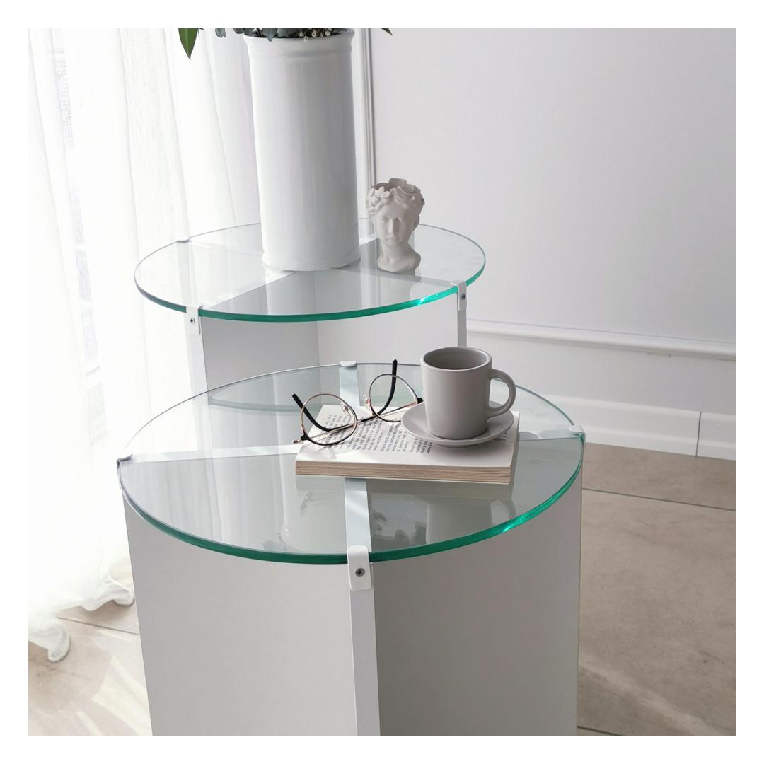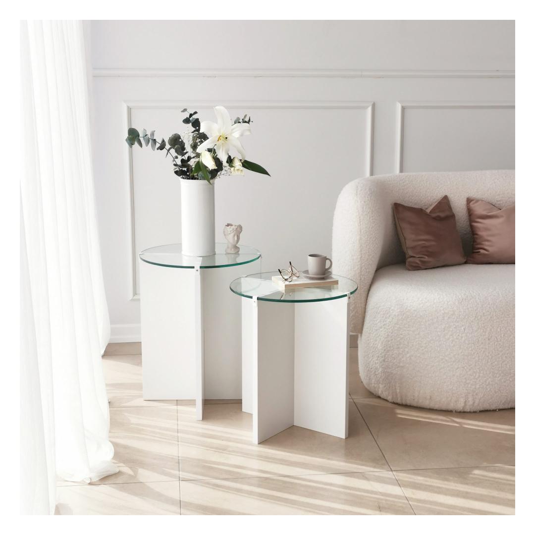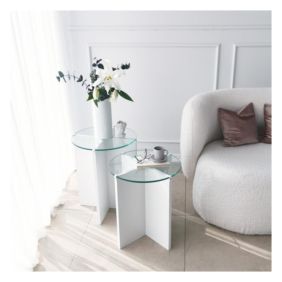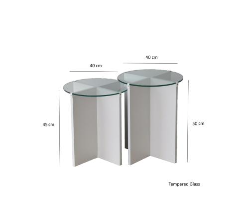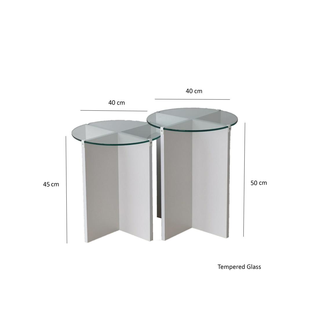 Muuda oma eluruum neid hämmastavaid Skandinaavia inspireeritud pesatablettega. Valmistatud 100% karastatud klaasist ja sleek melamiinkattega puitlaastplaadi raamist, need lauad kiirgavad elegantsi ja rafineeritust.Tõsta oma kodu sisustusNeed pesatabletid ei ole mitte ainult funktsionaalsed, vaid ka statement-tükid igas toas. Minimalistlik disain ja puhtad jooned lisavad sinu kodu sisustusele modernsuse puudutuse, samas kui valge värvigamma valgustab igat ruumi. Kas kasutad neid koos või eraldi, need lauad kindlasti muljetavad sinu külalisi ja tõstavad sinu elutoa atmosfääri.Mitmekülgne ja praktilineKaks erinevat lauakest võimaldavad lõputuid võimalusi stiilimiseks ja paigutamiseks. Kasuta neid külglauana, kohvilauana, taimealustena või isegi öölauana. Kompaktne disain teeb neist ideaalsed väikestesse ruumidesse, samas kui vastupidavad materjalid tagavad pikaealisuse ja lihtsa hoolduse.Tehnilised andmed:Materjal: 100% karastatud klaasRaam: 100% melamiinkattega puitlaastplaatPaksus: 18 mmDiameeter: 40 cmKõrgused: 45 cm ja 50 cmVärv: ValgeÄra jäta kasutamata võimalust lisada oma koju Skandinaavia elegantsi. Tellige oma pesatablettide komplekt täna ja kogege ilu ja funktsionaalsust, mida need teie eluruumi toovad. Värv: White