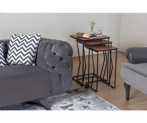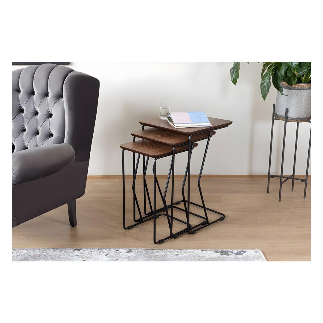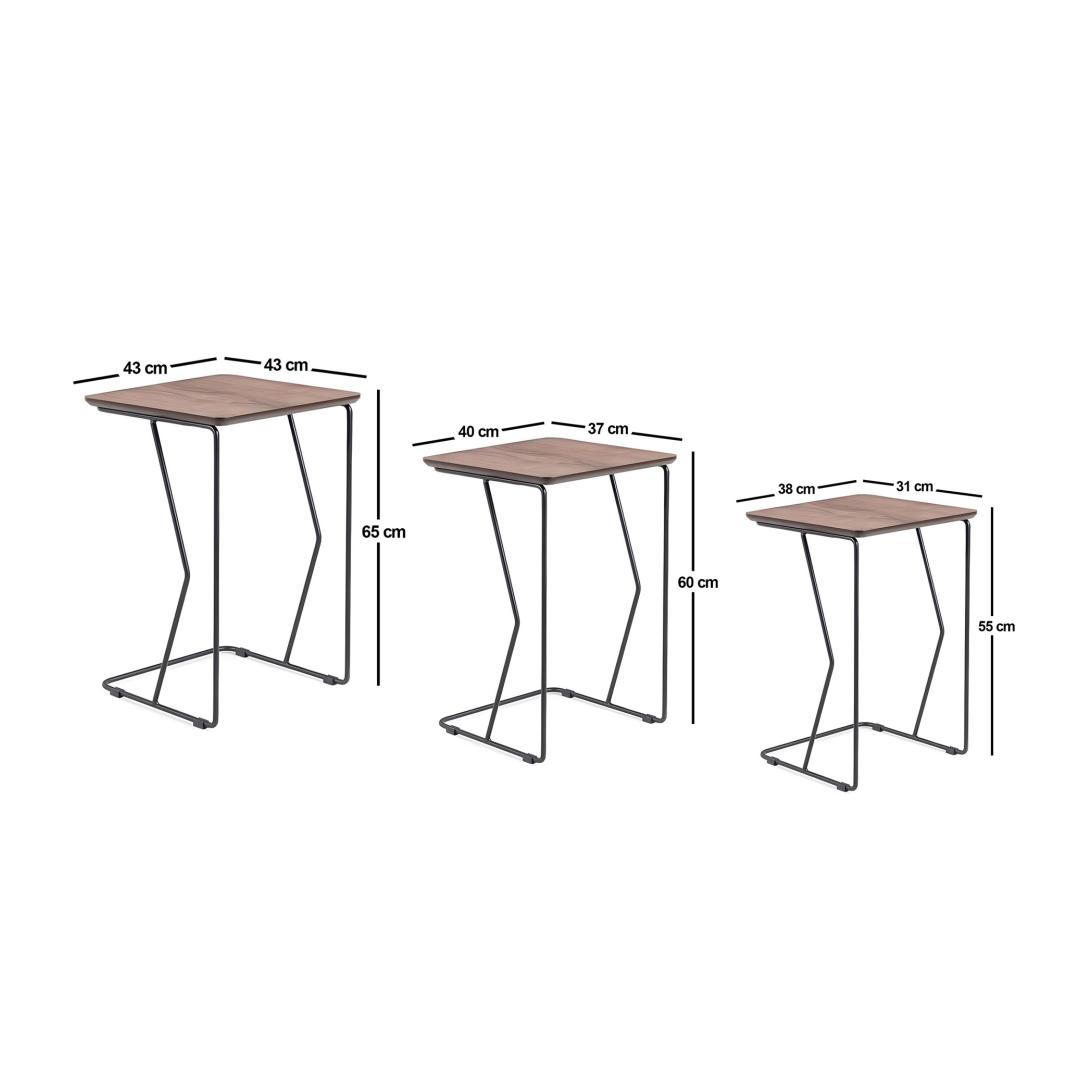Loo stiilne ja funktsionaalne elutuba meie pesitsuslaudade komplektigaSoovite muuta oma eluruumi stiilseks ja funktsionaalseks? vaadake meie pesitsuslaudade komplekti! see kolmest lauast koosnev komplekt on loodud lisama elegantsust igasse ruumi, pakkudes samas mitmekülgset funktsionaalsust. Tõstke oma kodu sisekujundust elegantsi ja elegantsusegaNeed ülima täpsusega valmistatud pesaplaadid on valmistatud 100% mdf-ist, mis tagab vastupidavuse ja pikaealisuse. Stiilsed metalljalad ei lisa mitte ainult moodsat puudutust, vaid pakuvad ka stabiilsust ja tuge. Pähklipuidust laudade värvus lisab teie kodu sisustusele soojust ja elegantsust, muutes need ideaalseks täienduseks igale sisustusstiilile. Maksime oma ruumi mitmekülgse disainigaPesaplaatide ilu seisneb nende mitmekülgsuses. Neid laudu saab kasutada üksikult või üksteisega pesitsedes, et säästa ruumi, kui neid ei kasutata. Kui teil on vaja lisapinda hommikukohvi jaoks, kohta oma lemmikdekoratsioonide eksponeerimiseks või mugavat kohta kodus töötamiseks, siis need pesaplaadid on teie jaoks olemas. Tehnilised üksikasjad:Materjal: 100% MDFJalad: MetallLaud 1: laius: 43 cm, kõrgus: 65 cm, sügavus: 43 cm.Laud 2: laius: 40 cm, kõrgus: 60 cm, sügavus: 37 cm.Laud 3: laius: 38 cm, kõrgus: 55 cm, sügavus: 31 cmVärv: PähklipuuÄrge jätke kasutamata võimalust täiendada oma eluruumi meie pesapinkide komplektiga. Tellige kohe ja kogege stiili ja funktsionaalsuse täiuslikku segu oma kodus! Värv: Walnut