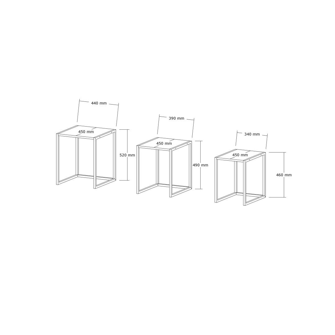 - Medium Table: Width 39cm, Height 49cm, Depth 45cm