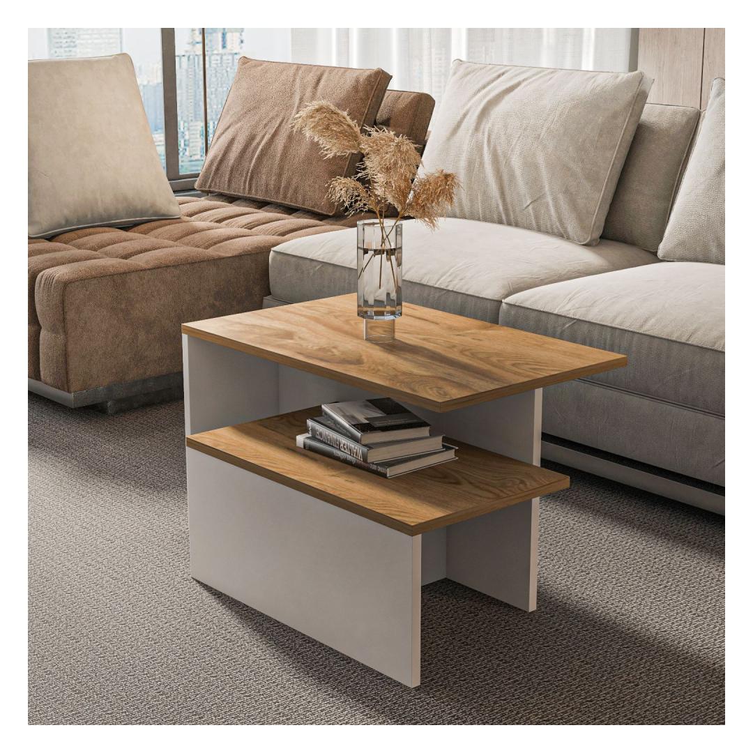 The Nesting Table set features a modern design with a combination of Oak and White colors, making it easy to blend with any decor style. The clean lines and sleek finish add a touch of sophistication to your space, while the nesting design allows for easy storage when not in use.