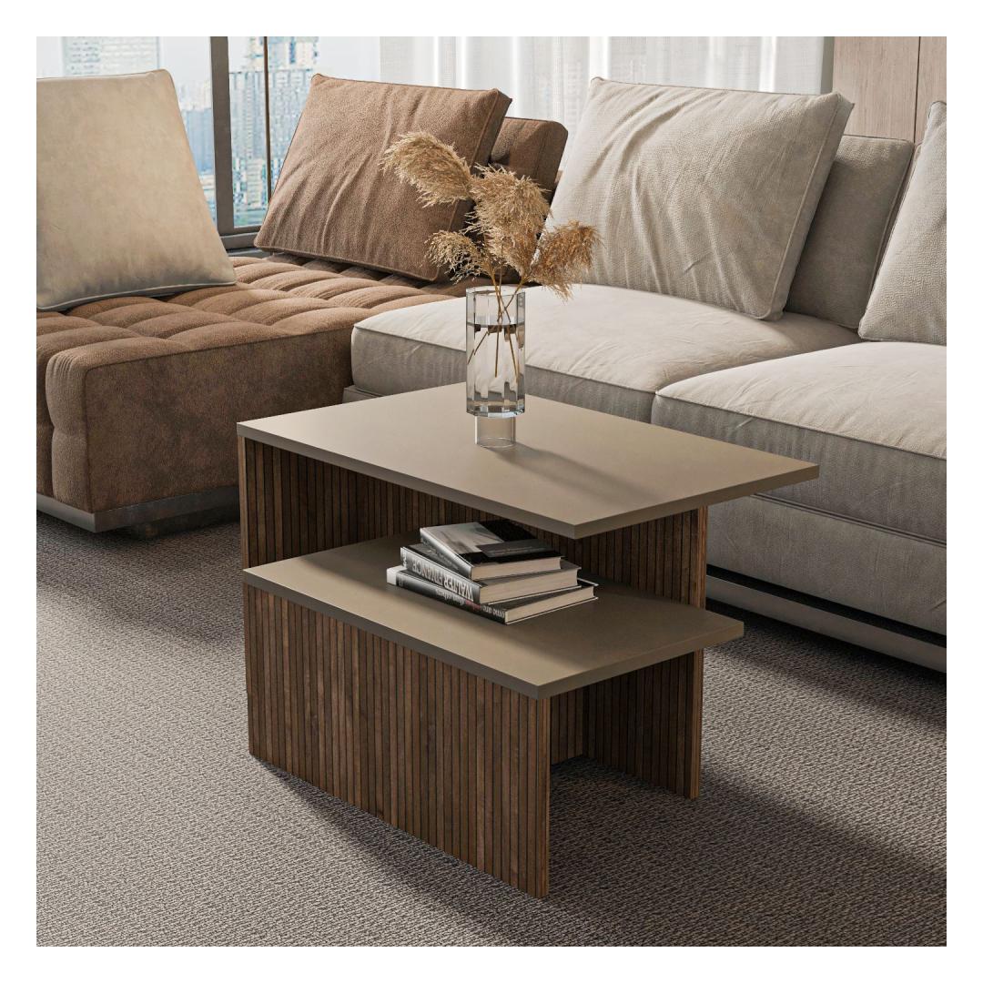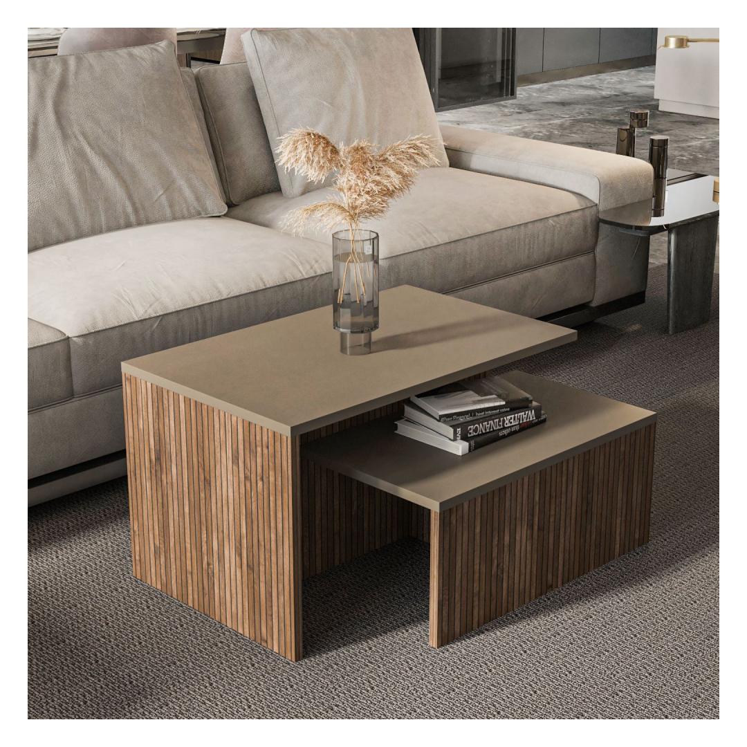 Nesting Table (2 Pieces) Twins - Taupe, Oak