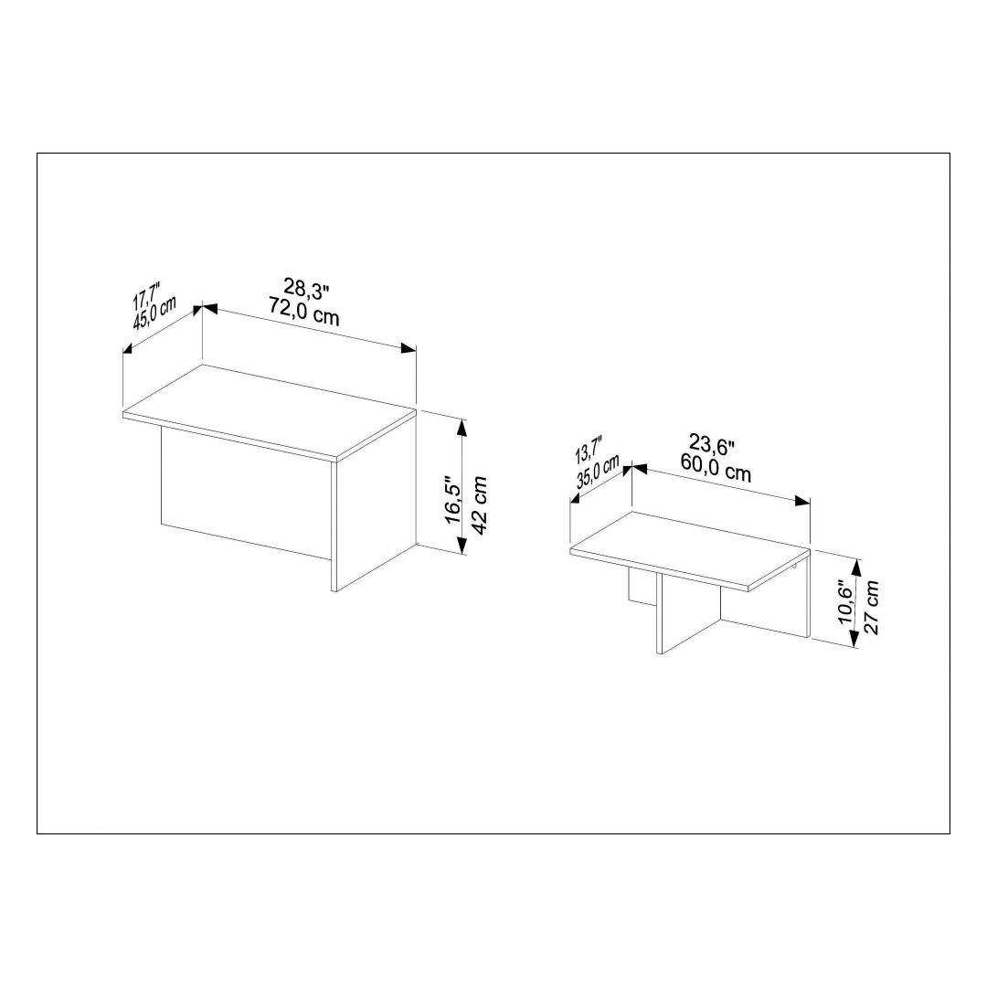 The big table measures 72 cm in width, 42 cm in height, and 45 cm in depth, while the small table measures 60 cm in width, 27 cm in height, and 35 cm in depth. This nesting design allows you to save space when not in use, making it perfect for smaller living areas or apartments.