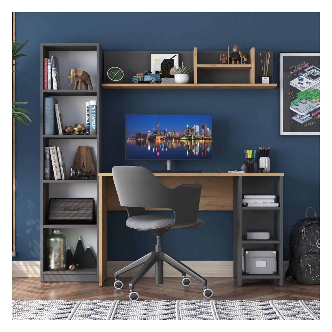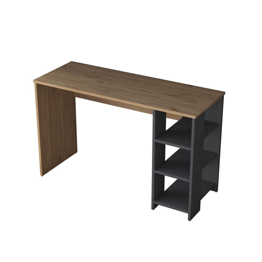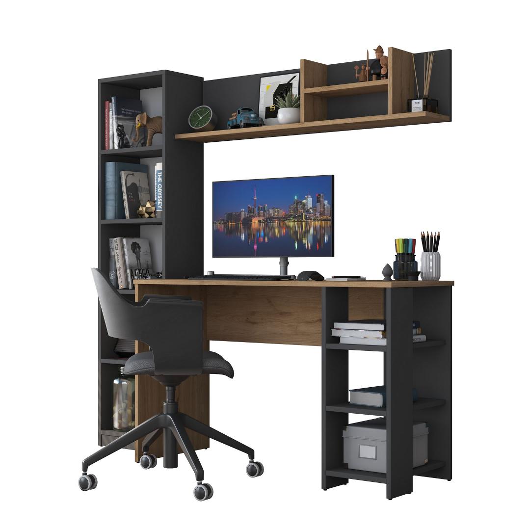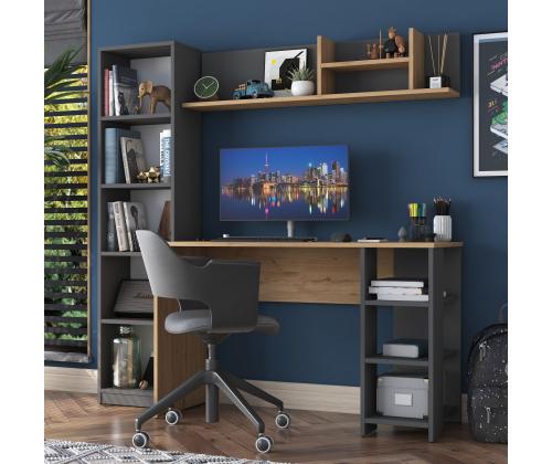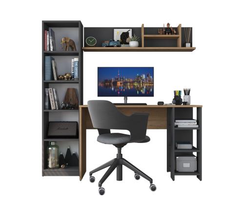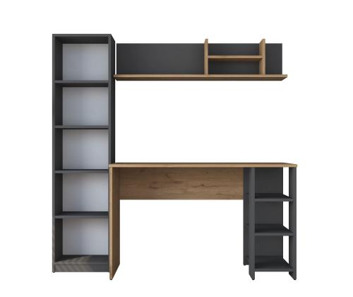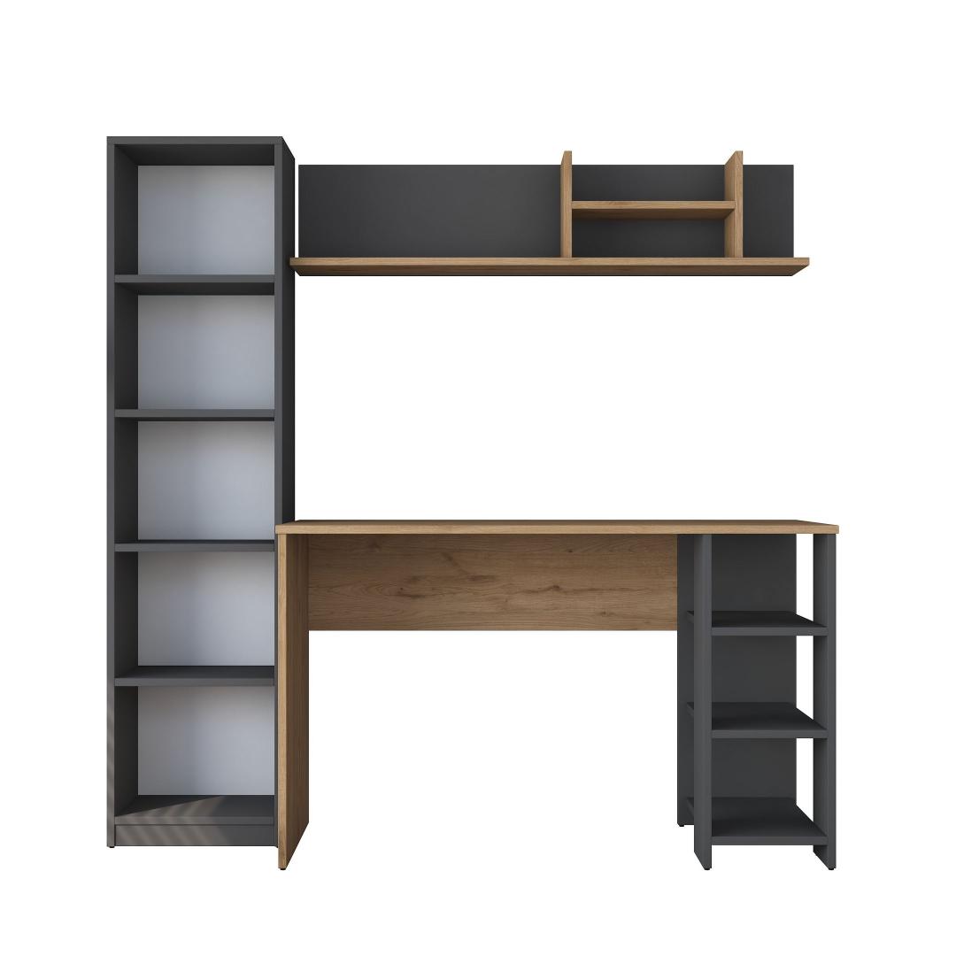 Muuda oma õpingute ruum produktiivsuse ja organiseerituse pelgupaigaks meie õpingute laua ja raamaturiiuli komplektiga. Valmistatud 100% melamiinkattega puitlaastplaadist, on see laud ja raamaturiiul mitte ainult vastupidavad, vaid ka stiilsed, muutes need ideaalseks lisandiks igasse kaasaegsesse koju.Tõhus disain maksimaalse funktsionaalsuse jaoksÕpingute laud on varustatud avara lauapinnaga, mis on ideaalne raamatute ja märkmete laiali laotamiseks õppimise ajal. Kinnitatud raamaturiiul pakub piisavalt ruumi kõigi teie lemmiklugemiste jaoks, hoides need käeulatuses kiireks juurdepääsuks. Lisaks lisab seina riiul täiendavat hoiuruumi väiksematele esemetel või dekoratiivsetele detailidele, aidates hoida teie tööruumi korras.Elegantne pähklipuu ja antriitviimistlusLihtne pähklipuu ja antriitvärvi kombinatsioon lisab teie õpingute ruumile elegantsi, tõstes teie toa üldist esteetikat. Olenemata sellest, kas olete üliõpilane või professionaal, inspireerib see laud ja raamaturiiul teid töötama rohkem ja nutikamalt, samal ajal näidates välja vaevata šikki välimust.Tehnilised andmed:Materjal: 100% melamiinkattega puitlaastplaatPaksus: 18 mmÕpingute laua mõõtmed: Laius: 120 cm, Kõrgus: 73.8 cm, Sügavus: 45 cmRaamaturiiuli mõõtmed: Laius: 40 cm, Kõrgus: 161.8 cm, Sügavus: 25 cmSeina riiuli mõõtmed: Laius: 120 cm, Kõrgus: 25 cm, Sügavus: 19.8 cmKokku suurus: Laius: 160 cm, Kõrgus: 161.8 cm, Sügavus: 45 cmVärv: Pähklipuu ja antriit Värv: Walnut Anthracite