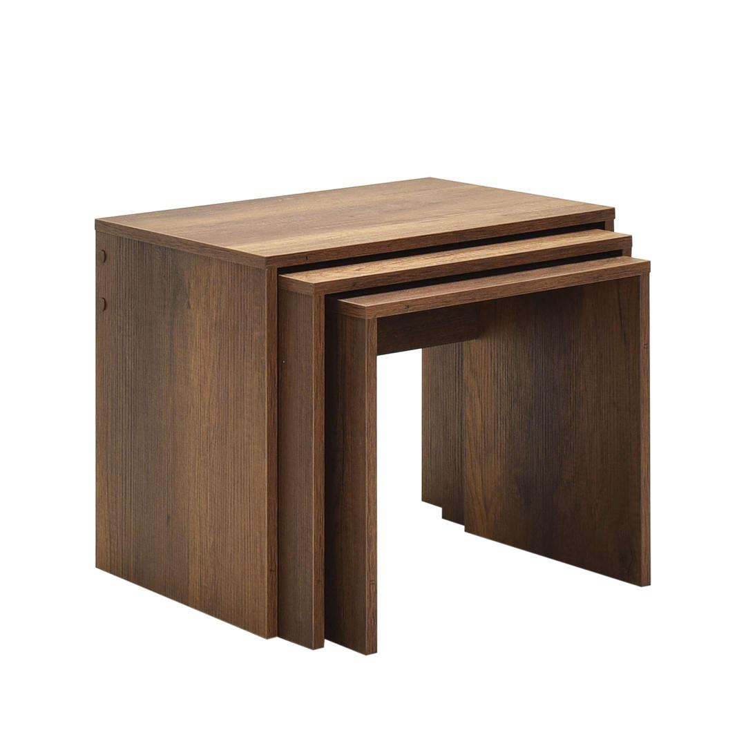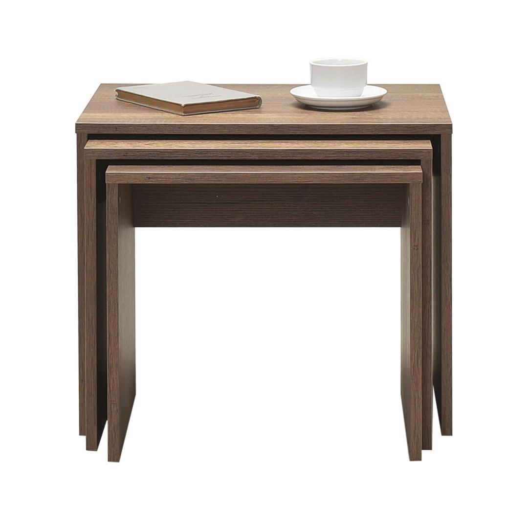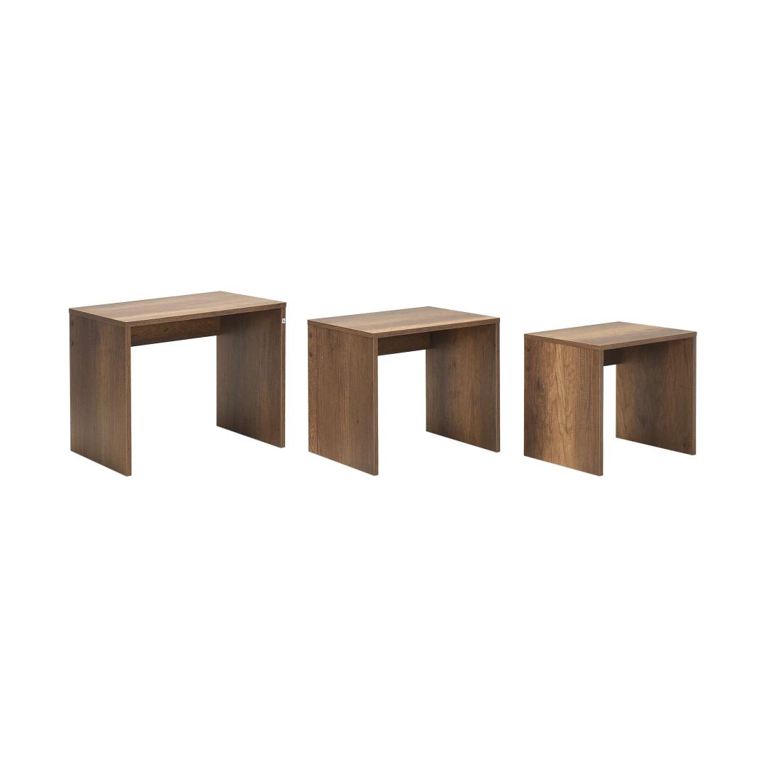 Kas otsite, kuidas lisada oma eluruumi elegantsi ja funktsionaalsust? Siis ei pea te enam otsima, meie kaunis 3-osaline pesastatav laudade komplekt on just see, mida vajate! Need lauad ei ole lihtsalt mööbliesemed, vaid stiili ja rafineerituse väljendus. Elegants oma parimas vormisValmistatud 100% melamiinkattega puitlaastplaadist, on need pesastatavad lauad mitte ainult vastupidavad, vaid ka uskumatult stiilsed. Pähklipuu värv lisab igasse ruumi soojust, muutes selle ideaalseks lisandiks teie kodu sisustusse. Funktsionaalne ja mitmekülgneOlgu need külglauad, kohvilauad või isegi teie lemmikdekoorielementide väljapanekuks, need pesastatavad lauad on uskumatult mitmekülgsed. Nende kompaktne suurus teeb neist ideaalsed väikestesse ruumidesse, samas kui nende voolujooneline disain lisab igasse ruumi modernsuse puudutuse. Looge oma ainulaadne ruumKolme erineva suuruse valikuga saate luua oma ainulaadse ruumi, paigutades neid pesastatavaid laudu erinevatesse konfiguratsioonidesse. Segage ja sobitage neid vastavalt oma vajadustele ja stiilile, võimalused on lõputud!Tehnilised andmed:Materjal: 100% melamiinkattega puitlaastplaatPaksus: 16 mmLaius: 55 cmKõrgus: 47 cmSügavus: 40 cmVärv: Pähklipuu Värv: Walnut