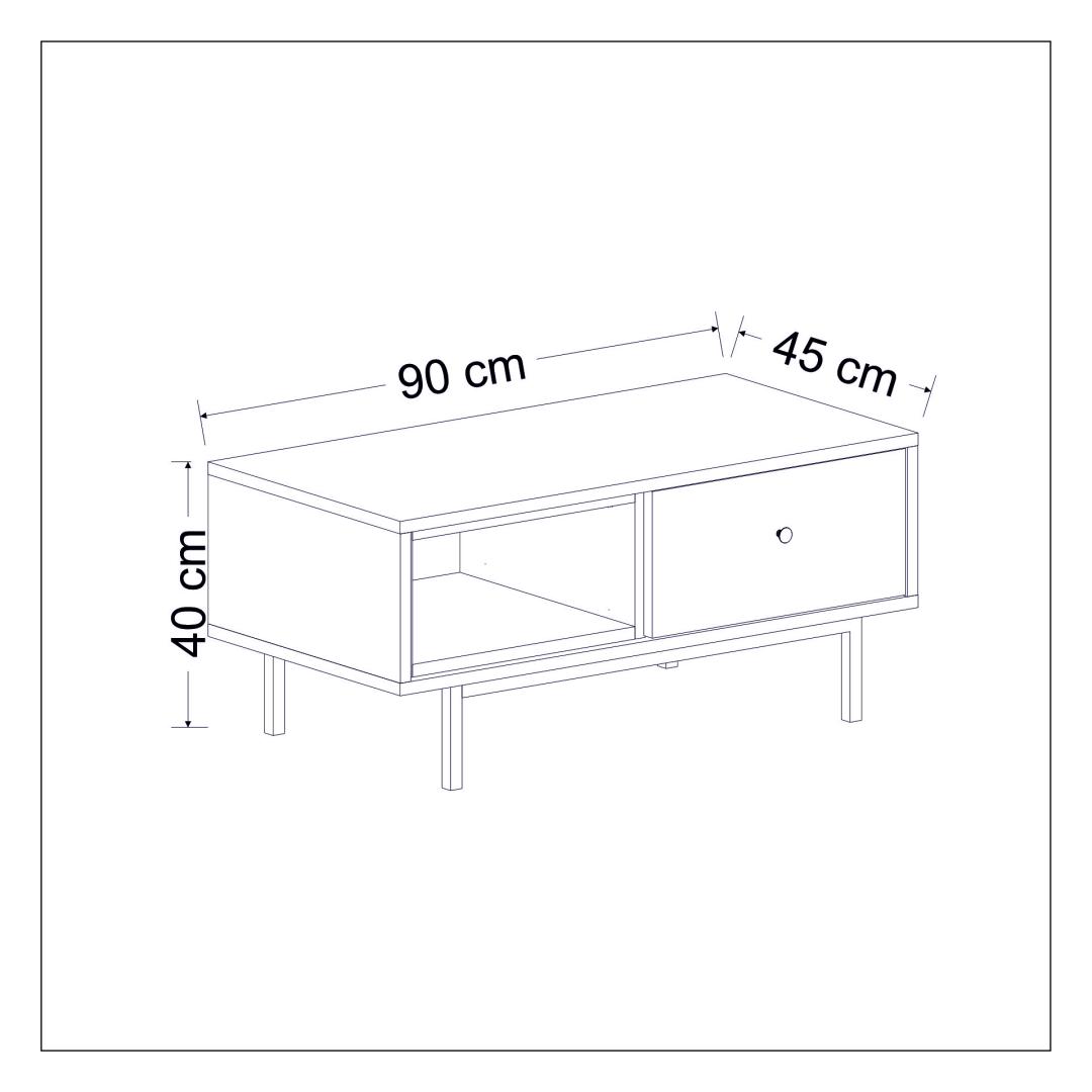 Coffee Table: Width: 90 cm Height: 40 cm Depth: 45 cm