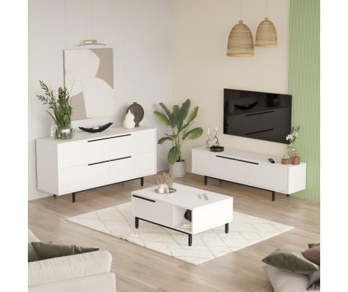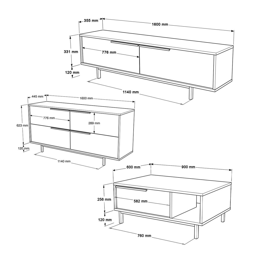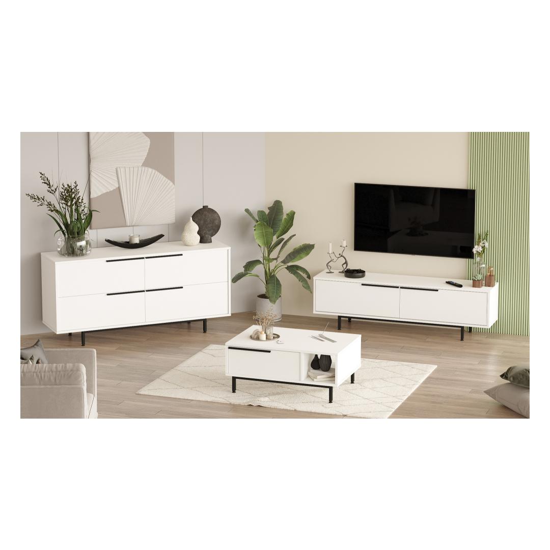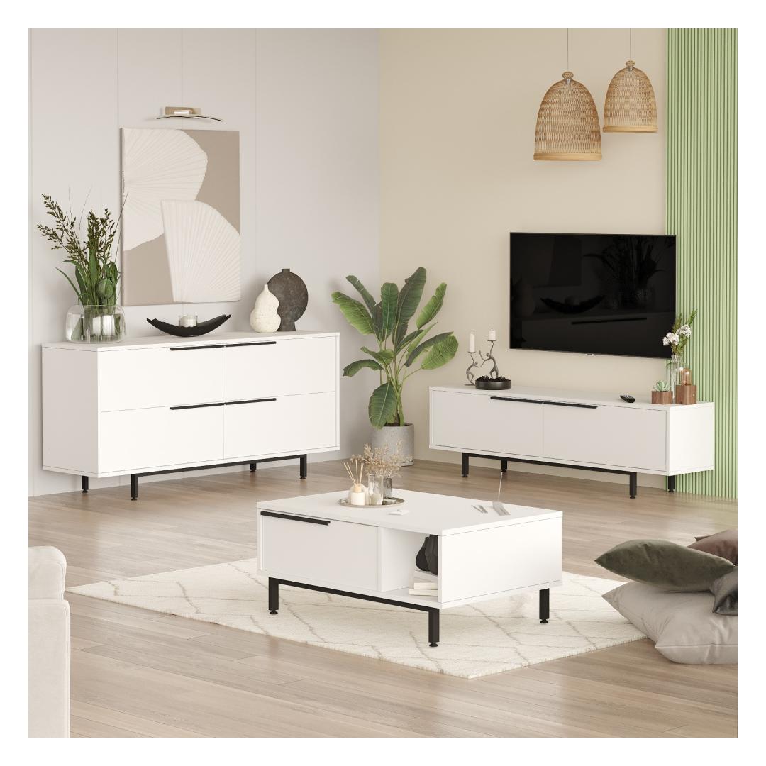 Muutke oma elutuba elegantseks ja moodsaks ruumiks oma elutoa mööblikomplektiga.See 100% melamiiniga kaetud puitlaastplaadist valmistatud komplekt on mitte ainult vastupidav, vaid ka uskumatult ilus ja elegantne.Tõstke oma ruumiSelles komplektis sisalduvad teleripult, kohvilaud ja konsool on kujundatud nii, et need toovad teie koju elegantse ilme.Mööbli puhtad jooned ja valge värvus muudavad teie elutoa kaunimaks ja loovad teile ja teie külalistele külalislahke atmosfääri. Kvaliteetne käsitööSee 18mm paksust puitlaastplaadist valmistatud ja tugevate metalljalgade toel valmistatud mööblikomplekt on valmis aastateks.TV-pult, kohvilaud ja konsool on kujundatud nii, et need on varustatud suure mahuga, mis aitab teil hoida oma elutuba korrastatuna ja ilma segadusteta. Loo hubane õhkkondOlenemata sellest, kas te puhkate koos oma pere või sõpradega, see elutoa mööblikomplekt aitab teil luua oma kodus hubase ja kutsuva atmosfääri.Selle puhas disain ja neutraalne värv sobitub hõlpsasti mis tahes olemasoleva sisustusega. Tehnilised üksikasjad:Materjal:100% melamiiniga kaetud puitlaastplaat.Paksus:18mmTV stend:laius:160cm,kõrgus:45cm,sügavus:35.5cmKohvilaud:laius:90cm,kõrgus:37.6cm,sügavus:60cmKonsool:Laius:160cm,kõrgus:74.3cm,sügavus:44.5cmMetalljaladVärv:Valge Värv: White