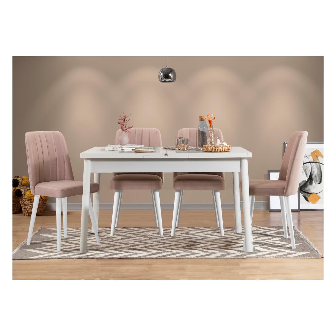 Extendable Dining Table & Chairs Set (5 Pieces) Santiago White Stone V2