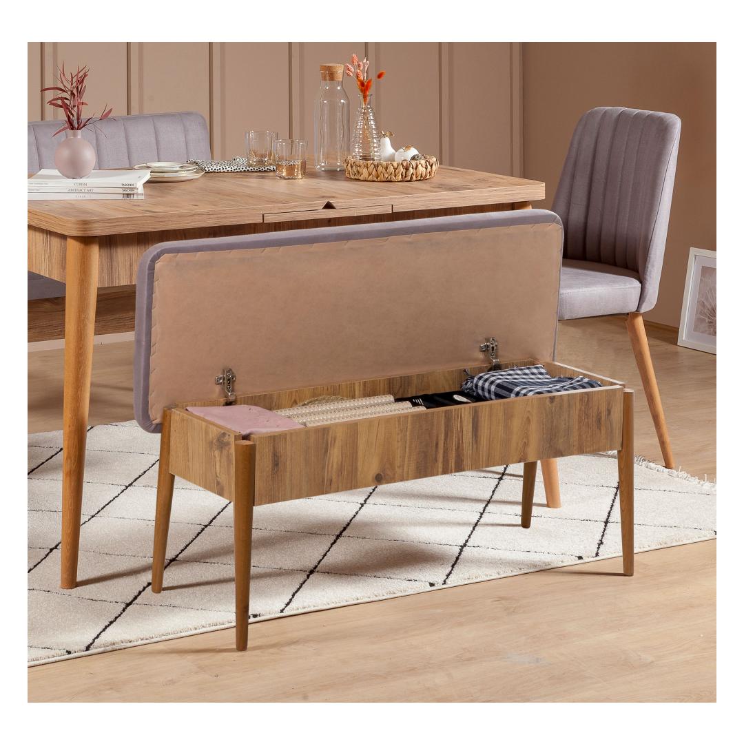 In addition to the dining set, this product also includes a storage unit with ample space to keep your dining essentials organized and within reach. The Atlantic Pine and Soho color combination adds a touch of warmth and charm to any dining space, whether it be modern, rustic, Scandinavian, or country-inspired.
