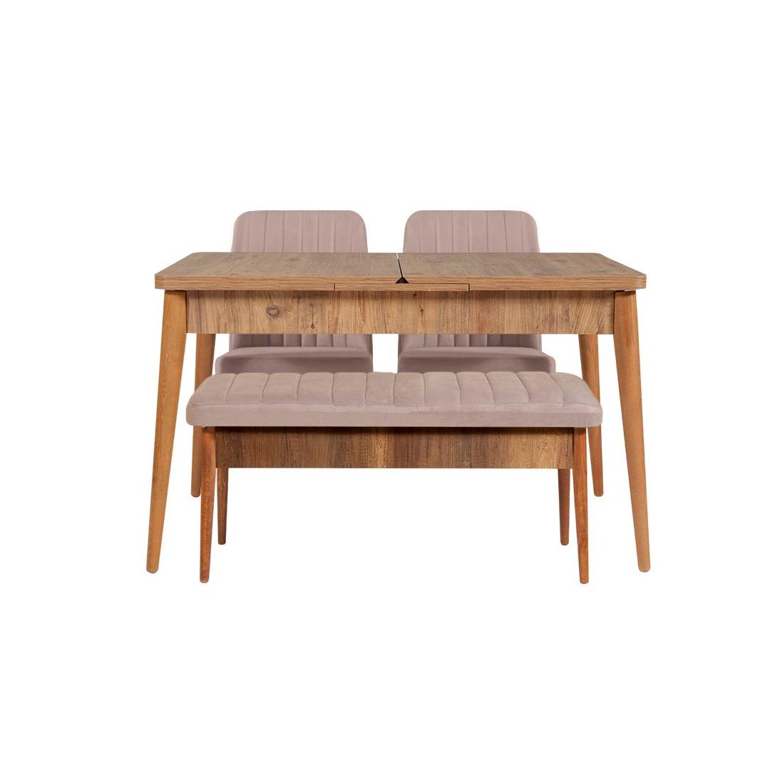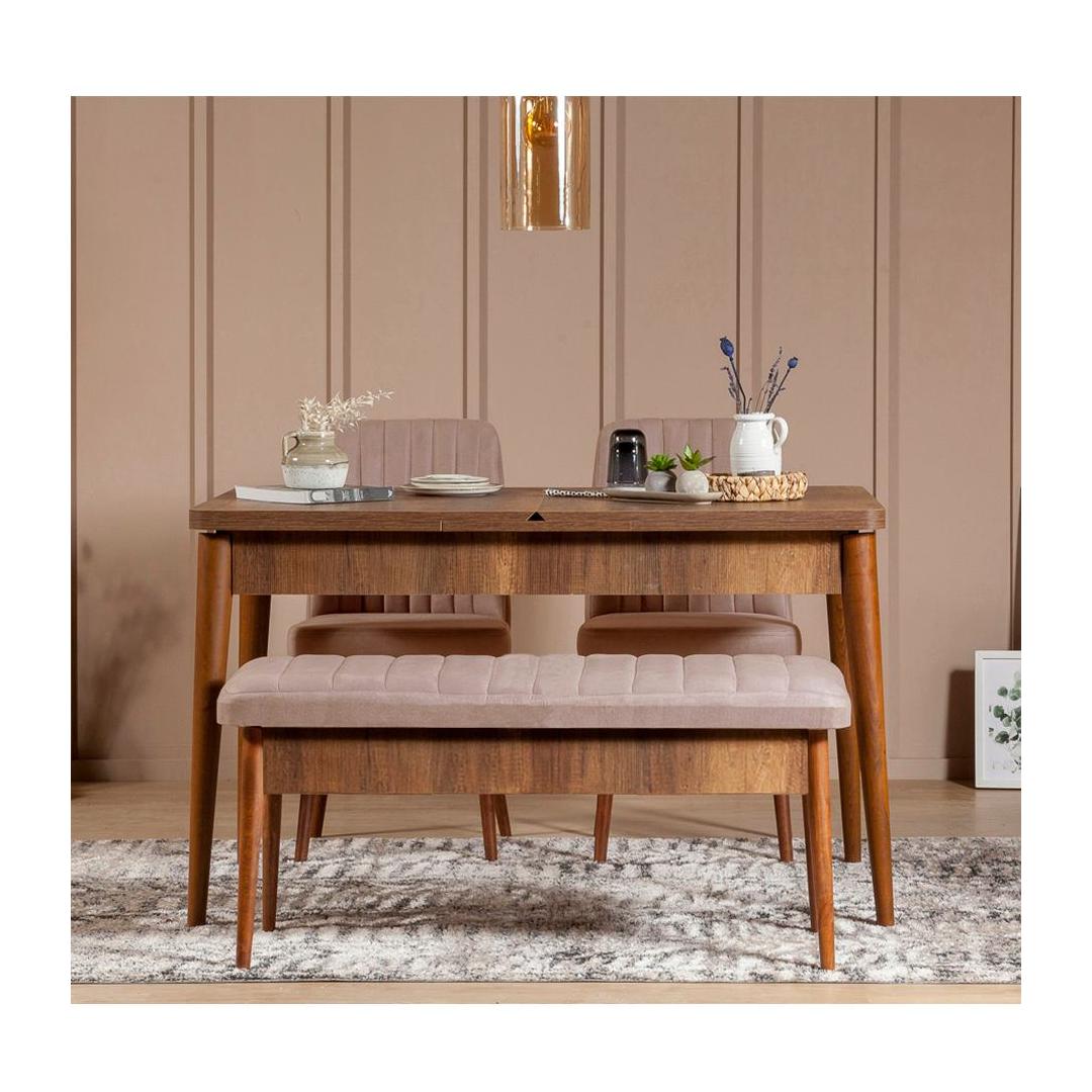 Extendable Dining Table & Chairs Set (4 Pieces) Vina 0900 - Walnut Stone