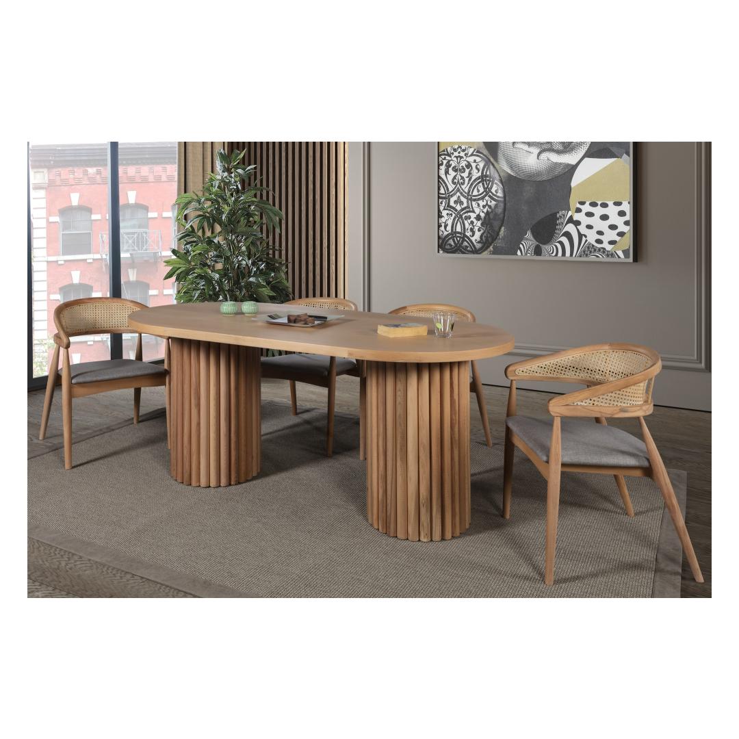 Muunna ruokasalisi viihtyisäksi ja kutsuvaksi tilaksi upealla ruokapöytä- ja tuolisarjalla. Tämä setti on valmistettu 100 % pyökki-mdf-levystä ja verhoiltu ylellisellä 100 % pellavakankaalla, joka huokuu eleganssia ja hienostuneisuutta. Tyylikäs muotoilu tyylikkääseen ruokailuunPöydän mitat ovat 170 cm leveä, 75 cm korkea ja 90 cm syvä, joten siinä on runsaasti tilaa perhekokouksiin tai illallisjuhliin. Sarjaan kuuluvat neljä tuolia ovat 49 cm leveitä, 78 cm korkeita ja 54 cm syviä, mikä tarjoaa mukavuutta ja tyyliä vieraillesi. Luonnollinen kauneus takaa lämpimän ja kutsuvan ilmapiirinTämän setin luonnollinen väri tuo lämpöä ja charmia minkä tahansa ruokasalin sisustukseen. Riippumatta siitä, nautitko rentoa ateriaa perheen kanssa vai isännöitkö juhlallisia illalliskutsuja, tämä setti luo täydellisen tunnelman jokaiseen tilaisuuteen. Tuolien mitat: 1,5 cm: Leveys: 49 cm, Korkeus: 78 cm, Syvyys: 54 cm (4 kpl)Väri: luonnollinen Väri: Luonnollinen