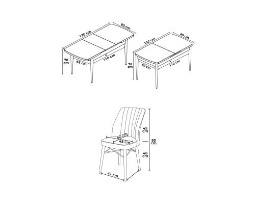 Open Dining Table: Width: 170 cm Height: 78 cm Depth: 80 cm