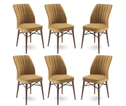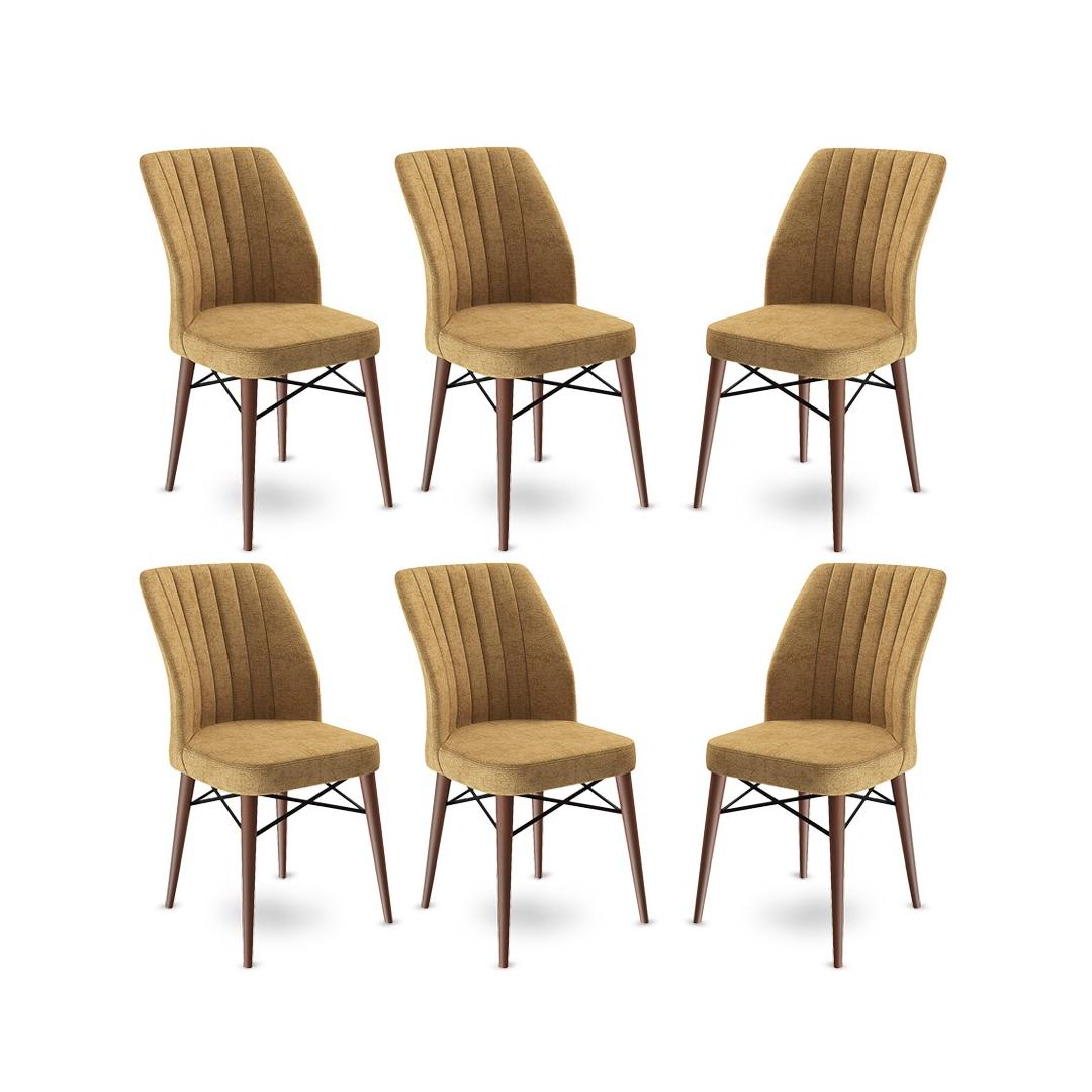 Muuda oma söögituba stiilseks ja kutsuvaks ruumiks meie 6-osalise toolikomplektiga. Need toolid on valmistatud vastupidavast 100% metallraamist ja luksuslikust Babyface kangast, mis teeb need mitte ainult vastupidavaks, vaid ka äärmiselt mugavaks.Elegantne disainToolide voolujooneline disain tõstab koheselt teie söögiala välimust. Kaputsiinokohvi ja pruuni värvitoon lisavad elegantsi, samas kui puidust jalad annavad klassikalise ja ajatu ilme.Mugav istumine18 DNS vaht selja jaoks ja 22 DNS vaht istumise jaoks pakuvad need toolid ideaalset tasakaalu toe ja mugavuse vahel. 48 cm istme kõrgus tagab, et saate mugavalt istuda tunde.Kvaliteetne konstruktsioonNeed toolid on ehitatud kestma, arvestades kvaliteeti. Metallraam tagab stabiilsuse ja tugevuse, samas kui puidust jalad lisavad kogu disainile soojust.Tehnilised andmed:Raam: 100% metallKangas: BabyfaceLaius: 45 cmKõrgus: 93 cmSügavus: 42 cm (6 tükki)Istme kõrgus: 48 cmJala kõrgus: 44 cmVaht: 18 DNS seljale, 22 DNS istumiseksPuidust jaladVärv: Kaputsiinokohvi ja pruun Värv: Cappuccino Brown