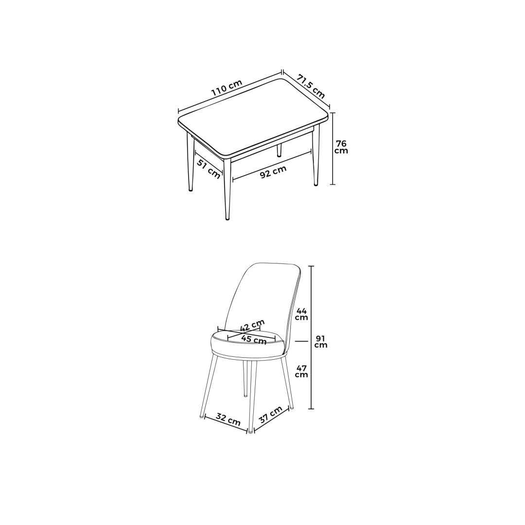 Dining Table: Width: 110 cm Height: 76 cm Depth: 71 cm (1 Piece)