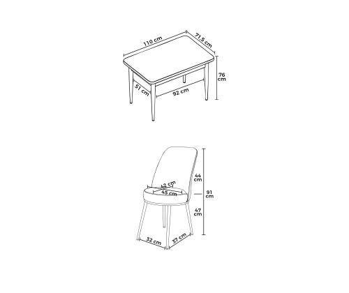 Dining Table: Width: 110 cm Height: 76 cm Depth: 71 cm (1 Piece)
