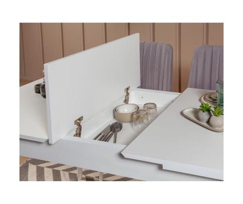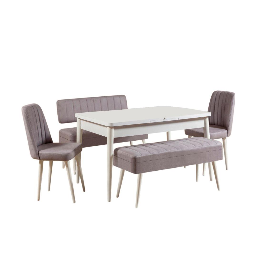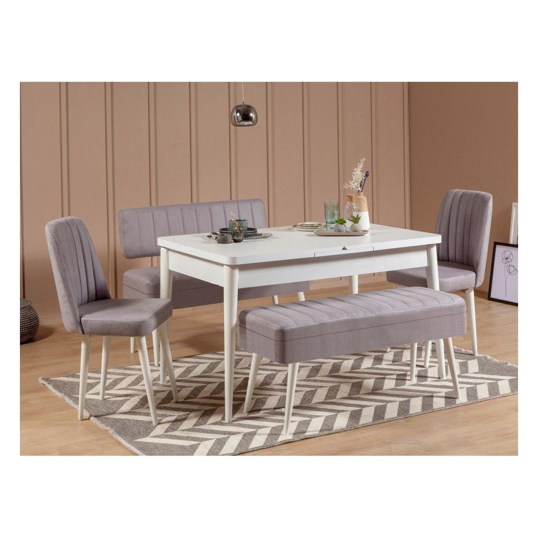 Extendable Dining Table & Chairs Set (5 Pieces) Vina 0701 - 4 - White, Grey
