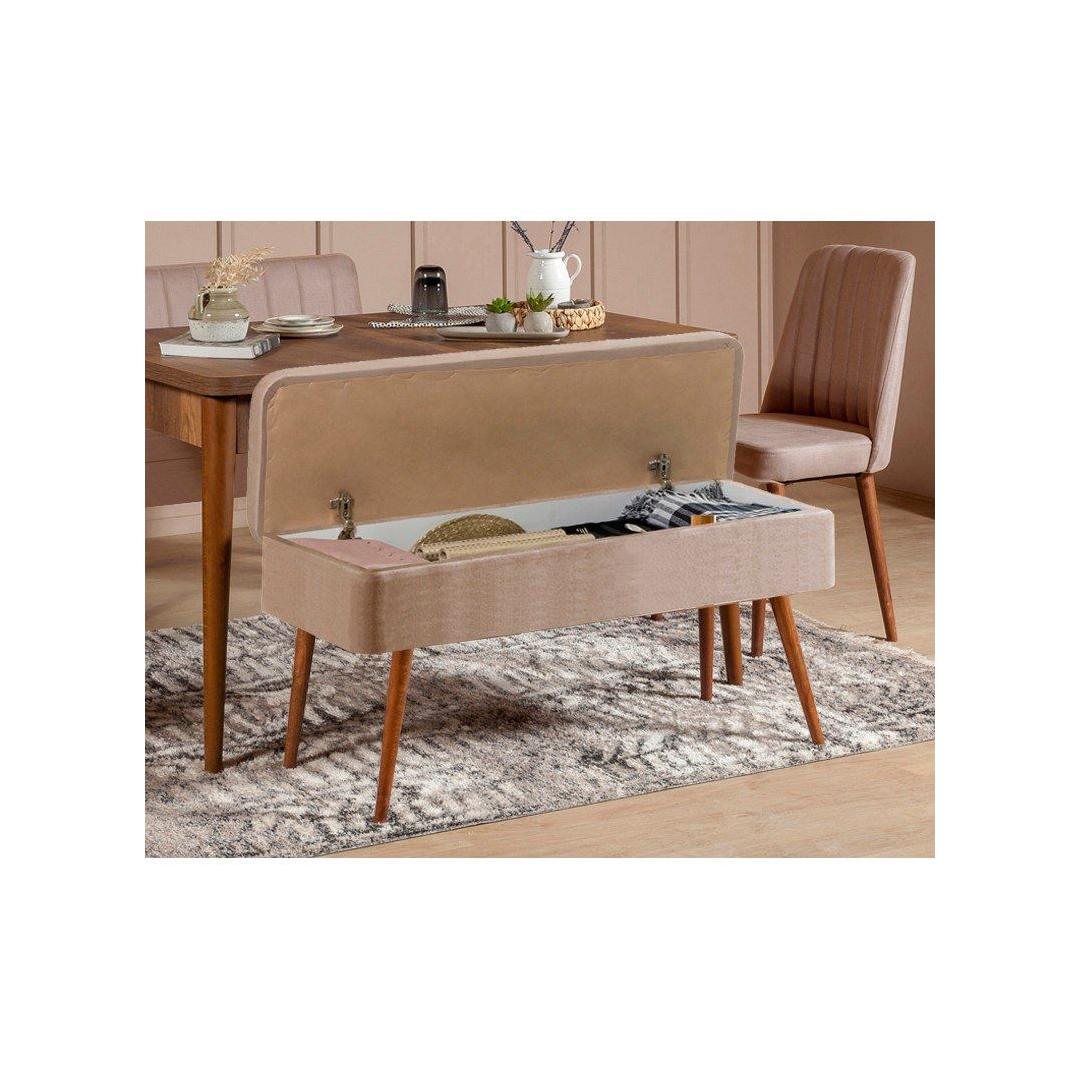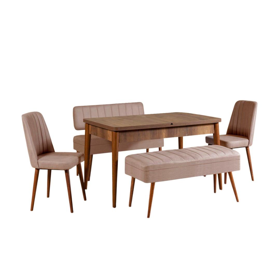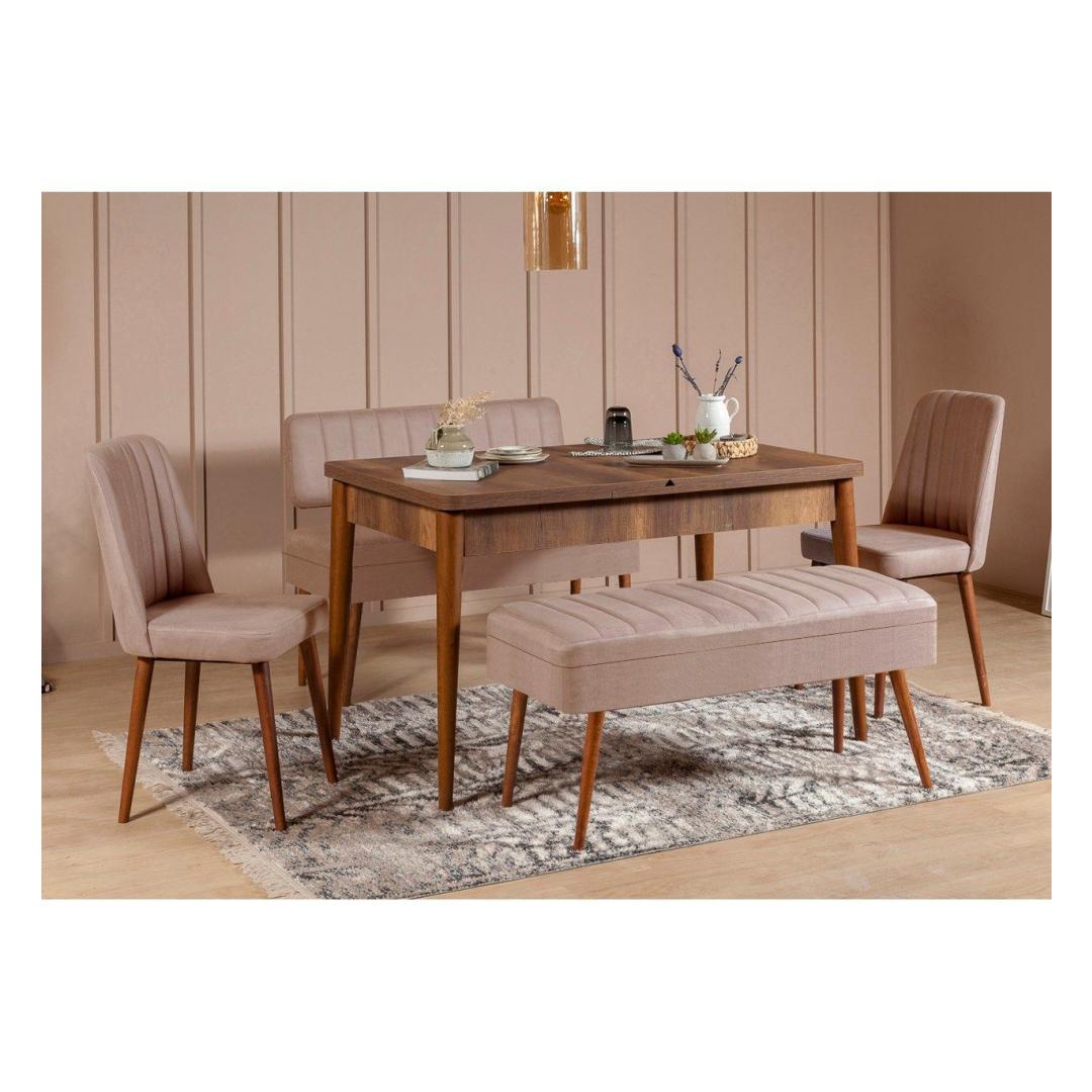 Extendable Dining Table & Chairs Set (5 Pieces) Vina 0900 - 4 - Walnut, Stone