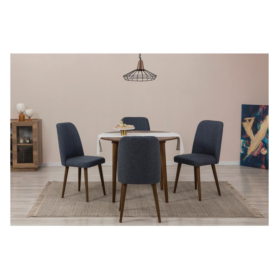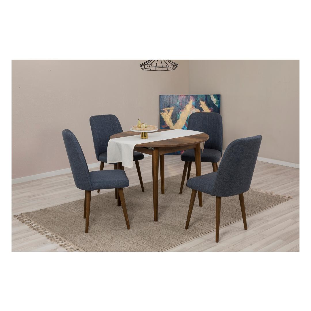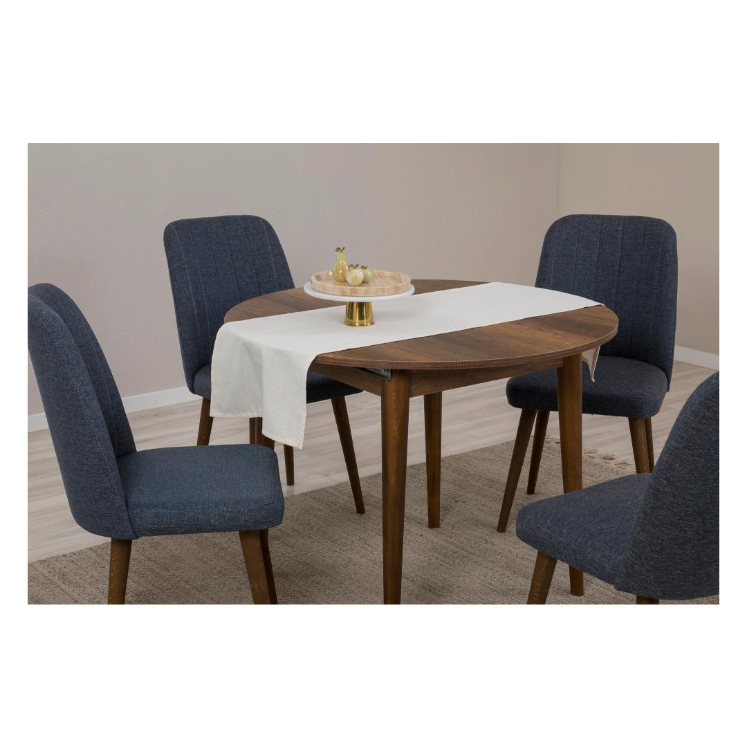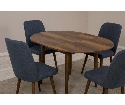 Extendable Dining Table & Chairs Set (5 Pieces) Vina 1048 - Walnut, Navy Blue